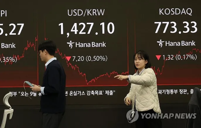 외인·기관'팔자'…삼성전자·SK하이닉스동반하락'인터배터리2025'앞두고이차전지주강세…해운주도상승코스피낙폭줄여2,640대하락마감(서울=연합뉴스)이진욱기자=24일서울중구하나은행본점딜링룸에서딜러들이업무를보고있다.이날코스피는전장보다9.31포인트(0.35%)내린2,645.27에장을마쳤다[email protected](서울=연합뉴스)이민영기자=코스피가24일미국경기침체우려속에서도막판낙폭을줄여2,640대에서장을마쳤다.이날코스피는전장보다9.31포인트(0.35%)내린2,645.27로마감했다.지수는전장보다18.46포인트(0.70%)내린2,636.12로출발한뒤낙폭을키워한때2,626.88까지내리기도했으나장후반하락폭을줄였다.이날오후3시30분기준서울외환시장에서달러대비원화환율은전날보다6.9원내린1,427.4원을나타냈다.유가증권시장에서외국인과기관이각각2천1억원,918억원순매도했으며개인은1천927억원매수우위를보였다.외국인은코스피200선물시장에서도1천736억원순매도했다.이가운데연기금은코스피시장에서178억원순매수하며36거래일연속'사자'행진을이어갔다.지난주말미국기술주약세에삼성전자(-1.55%),SK하이닉스(-2.15%)등반도체주가일제히내렸으며삼성바이오로직스(-0.52%),셑트리온(-0.11%),KB금융(-0.85%),신한지주(-0.94%)등도하락했다.반면다음달5∼7일국내최대규모배터리전시회인'인터배터리2025'를앞두고LG에너지솔루션(1.85%),LG화학(1.79%),삼성SDI(6.70%)등이차전지주는일제히올랐다.미국정부의중국선사견제책이구체화하면서HMM(7.12%),대한해운(1.90%),흥아해운(3.12%)등국내해운주도반사수혜기대감에상승했다.업종별로보면전기전자(-0.93%),건설(-0.57%),금융(-0.28%)등이내렸으며운송창고(3.94%),유통(1.45%)등은올랐다.코스닥지수는전장보다1.32포인트(0.17%)내린773.33에장을마쳤다.지수는전장보다7.71포인트(1.00%)하락한766.94로출발해장중내림폭을줄였다.코스닥시장에서외국인과기관이각각1천72억원,1천276억원순매도했으며개인은2천425억원매수우위를보이며지수하단을지지했다.알테오젠(-2.30%),레인보우로보틱스(-3.58%),리가켐바이오(-1.92%),클래시스(-1.36%)등이내렸다.에코프로비엠(2.47%),에코프로(2.08%)등이차전지주와HLB(7.58%),삼천당제약(3.95%),코오롱티슈진(1.13%)등은올랐다.이날유가증권시장과코스닥시장의거래대금은각각10조5천740억원,7조8천20억원으로집계됐다[email protected]▶제보는카톡okjeboCopyright©연합뉴스.무단전재-재배포,AI학습및활용금지