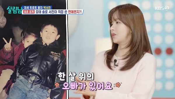 KBS2TV‘살림하는남자들’캡처KBS2TV‘살림하는남자들’캡처[뉴스엔유경상기자]한보름이친오빠를천사라고말해모두를놀라게했다.2월8일방송된KBS2TV‘살림하는남자들’에서는배우한보름이출연했다.한보름은박서진박효정남매의몸싸움을보고“너무심한것아니냐”며놀랐고,MC백지영과은지원이박서진이힘이없어박효정에게타격이없다고설명했다.이어한보름은형제관계로“1살위오빠가있다”고밝혔고백지영이“오빠에게천사라는표현을쓴다고?”라며놀랐다.한보름은“천사오빠다.너무착하다.초등학교다닐때부터제가몸이작고마르니까책가방을들어줬다”고오빠에대해말해모두를거듭놀라게했다.백지영이박서진에게“효정이책가방이라도들어준적있냐”고묻자박서진은“전지금도제물건을들게시킨다”고답했다.또백지영과은지원이한보름에게오빠가뭐라고부르는지물으며박서진이박효정을부르는“야!돼지새끼야!”를언급하자한보름은“그렇게부르면상처받는다”며놀랐다.하지만박서진은“걔는저한테종이쪼가리라고부른다”며동생이자신을부르는말로반박웃음을줬다.(사진=KBS2TV‘살림하는남자들’캡처)뉴스엔유경상yooks@기사제보및보도자료[email protected]ⓒ뉴스엔.무단전재&재배포금지Copyright©뉴스엔.무단전재및재배포금지.
