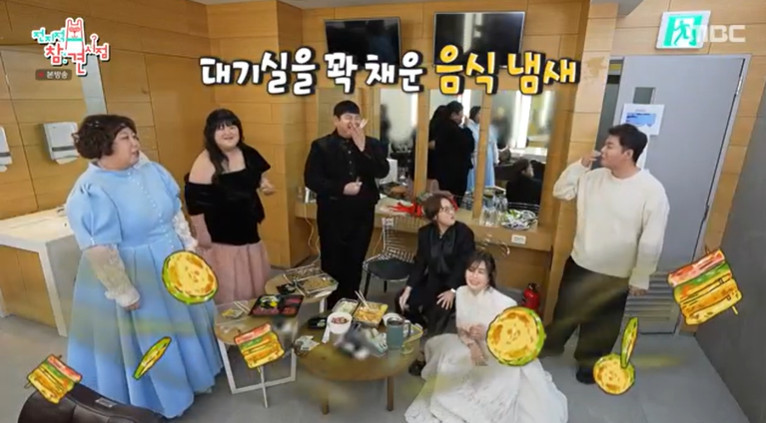 MBC'전지적참견시점'8일방송MBC'전지적참견시점'(서울=뉴스1)김보기자=배우최강희가생애처음으로연예대상시상식에참석한가운데,대기실문화충격을받았다.8일오후방송된MBC'전지적참견시점'에는최강희가'2024MBC방송연예대상'에참여하는모습이공개됐다.이날최강희는시상식을앞두고연예인별대기실들을구경하고있었다.송은이는최강희에게"같이'전참시'선배들한테인사하러가자"라며한대기실을데리고갔다.이곳에는이날축하무대를위해준비중인'구라뚱즈'의신기루,이국주,샵뚱이앉아있었다.앉은자리에는육회,육사시미,잡채부터각종전류와떡만둣국까지한상푸짐하게차려져있었다.신기루가최강희에게"뭘좀드셨냐"라고묻자최강희는"오늘못먹었다,드레스입느라고,연기대상에는화장지워질까봐아예안먹는다"라고대답했다.이에신기루는"라이트한음식이니좀드시라,원래연예대상은이렇게먹는다,이게풍토다"라고설명해최강희를깜짝놀라게했다.뒤이어들어온전현무는이광경을보더니"여기아파트지하상가냄새난다"라고표현해스튜디오를폭소케했다[email protected]©뉴스1.Allrightsreserved.무단전재및재배포,AI학습이용금지.
