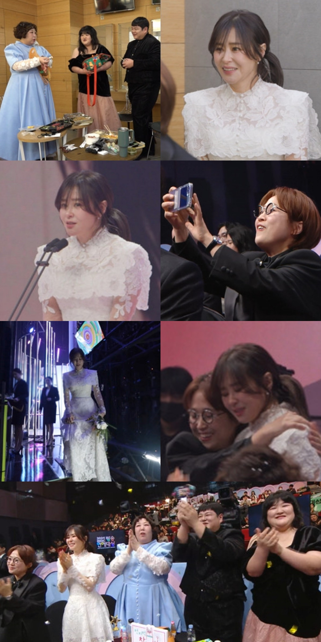 사진=MBC제공.배우최강희가‘신인상’수상후오열한비하인드가밝혀진다.8일방송되는MBC예능프로그램‘전지적참견시점’(이하‘전참시’)333회에서는최강희의‘2024MBC방송연예대상’신인상수상비하인드스토리가최초공개된다.이날방송에서최강희는송은이와함께‘전참시’가족인신기루,이국주,샵뚱의대기실에방문한다.구라뚱즈를만난최강희는반갑게인사를나눈것도잠시갈비찜,잡채등음식으로가득찬대기실테이블에놀라움을감추지못하는데.이어전현무와유병재가대기실에방문하자전참시팀의가족같은분위기에녹아들었다고.생방송이시작된후에도끊임없이허기를달래던신기루는“이게연예대상풍토다”라며놀란최강희를달래는가하면시상식용간식가방을오픈한다.최강희는신기루의철두철미한준비성에연신동공지진을일으켰다는후문.핑거푸드(?)를끊임없이흡입하는신기루와그를신기하게바라보는최강희의케미가시청자들의흥미를끌전망이다.그런가하면전참시멤버들은긴장한최강희를위해유쾌한입담으로분위기를끌어올린다.어느새전참시연예대상풍토(?)에적응한최강희는사전에준비해온간식을꺼내는가하면갑자기청소를시작해그만의엉뚱모멘트를선보인다.한편시상식에서최강희는쟁쟁한후보들가운데신인상수상의영예를안았고진심이담긴감동의수상소감으로현장에있던사람들의눈시울까지붉히게했다.끝내최강희는수상후백스테이지에주저앉아오열하고마는데.뿐만아니라최강희의신인상을비롯해베스트엔터테이너상최다니엘,우수상홍현희,올해의예능인상과명예의대상을휩쓴전현무까지.참견인들의수상을축하해주며시상식을알차게즐긴다고해‘2024MBC방송연예대상’의뒷이야기가고스란히공개될본방송이더욱기다려진다.이렇듯‘전참시’는‘2024MBC방송연예대상’에서5관왕을차지하며남다른영향력을증명했다.김지혜기자[email protected]©일간스포츠.무단전재및재배포금지.