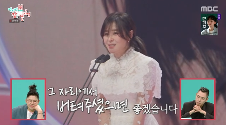 (엑스포츠뉴스황혜윤기자)최강희가'MBC연예대상'신인상수상소감을말하며눈물을흘렸다.8일MBC'전지적참견시점(전참시)'에서는신인상을수상한최강희가'MBC연예대상'시상식참석하는모습을공개했다.이날최강희는시상식을위해대기실에가기전그릭요거트에발사믹,꿀,소금,후추를넣은바질요거트를먹었다.요거트를먹기위해앉은테이블위에는이전에있던컴퓨터가사라져있었고,최강희는"컴퓨터는누구빌려줬다"고말하며여전히아나바다를열심히실천중임을알렸다.그러면서"친구들이실제로며칠씩집을빌리기도한다"고말했다.이에이영자는"그럼어디서자냐"고물었고,최강희는"본집가서잔다"고말해모두를놀라게했다.한편최강희는시상식맞이스킨케어과정을공개하며피부관리꿀팁을전하기도했다.그는토너를화장솜에쏟아부어출연진들을놀라게했는데,"스킨저렴한걸화장솜에잔뜩묻혀서올려두고"스킨케어를한다면서건조한사람들은토너를많이쓰는게좋은거같다고말했다.이후최강희는송은이와함께'연예대상'시상식에참석하기위해차를타고이동했다.그러면서송은이에게"('연예대상')후보에올랐냐"고물었고,송은이매니저는"후보하나있다"고말했다.그러나송은이는"나?나후보야?"라고물으며자신이'연예대상'후보에오른줄모르는예능대선배의모습을보여주기도했다.그러면서최강희에게"너는신인상후보잖아"라고말하며빵터졌다.한편송은이는지난'2009년SBS연예대상'에서브라운아이드걸스'아브라카다브라'축하공연을할때드레스를입었다고밝혔는데,당시송은이의모습이방송에송출되면서스튜디오는웃음바다가됐다.이어송은이는2009년연예대상당일무대뿐만아니라중간에소개팅이있었다면서"그옷이랑메이크업을하고소개팅을갔다"고말했다.이에홍현희는송은이에게"애프터왔냐"고물었고,송은이는"왔겠냐"고분노해시청자들의웃음을유발했다.이후'연예대상'대기실에서신기루,이국주,샵뚱이육회,육사시미,잡채,꼬치전과애호박전,떡만둣국먹방을펼치는모습이나와모두를놀라게하기도했다.이날최강희는'연예대상'에서신인상을수상했다.수상소감으로"얼마나귀한자리인지아는데아무생각도안난다"면서"어떤일을굉장히열심히하다가주저앉아서입술이부르트도록고민하고계신분들이얻을수있는기회가고작그자리에서서있는것뿐일지라도포기하지않고,그자리에서계셨으면좋겠다"고말하며눈물을흘렸다.최강희는"(신인상)자리가나한테너무무서운자리였다"면서"내가설자린가생각도들었다"면서신인상에대해감사하는모습을보였다.이에이영자는"'연예대상'신인상을받고감사하는모습이,같은예능하는사람으로서우리를존중해주는느낌이든다.강희의임하는자세가너무예뻐서너무감사하다"며최강희에게고마움을전했다.사진=MBC'전지적참견시점'황혜윤기자[email protected]©엑스포츠뉴스.무단전재및재배포금지.