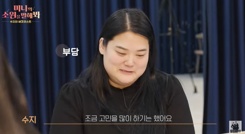 ‘필미커플’채널캡처‘필미커플’채널캡처[뉴스엔김명미기자]미나시누이수지씨가연기학원을찾았다.2월19일'필미커플'채널에는'수지누나진짜배우됩니다!'라는제목의영상이업로드됐다.이날미나류필립부부는시누이수지씨와함께연기학원을찾았다.수지씨는"계약서쓰러가야지"라며의지를드러냈고,류필립은"수강계약서?"라고물었다.이어류필립은"이미결정내렸냐?하고싶냐?"고재차물었고,수지씨는"응"이라며의지를드러냈다.또가족단톡방을통해서도"열심히하겠다.모두공연보러올수있게하겠다"고밝혔다.이후수지씨는연극도전을결정한후첫연습에나섰다."마샤역할을맡게된박수지"라고자기소개를한그는"제가연기를배워본적은있지만,한번도이렇게연극을해본적은없었다"고밝혔다.이어"민폐를끼치면안되는데고민을하긴했다"면서도"용기를내고더열심히해보도록하겠다"고말했다.한편150kg이었던수지씨는미나의도움을받아꾸준히다이어트를이어오고있다.뉴스엔김명미mms2@기사제보및보도자료[email protected]ⓒ뉴스엔.무단전재&재배포금지Copyright©뉴스엔.무단전재및재배포금지.