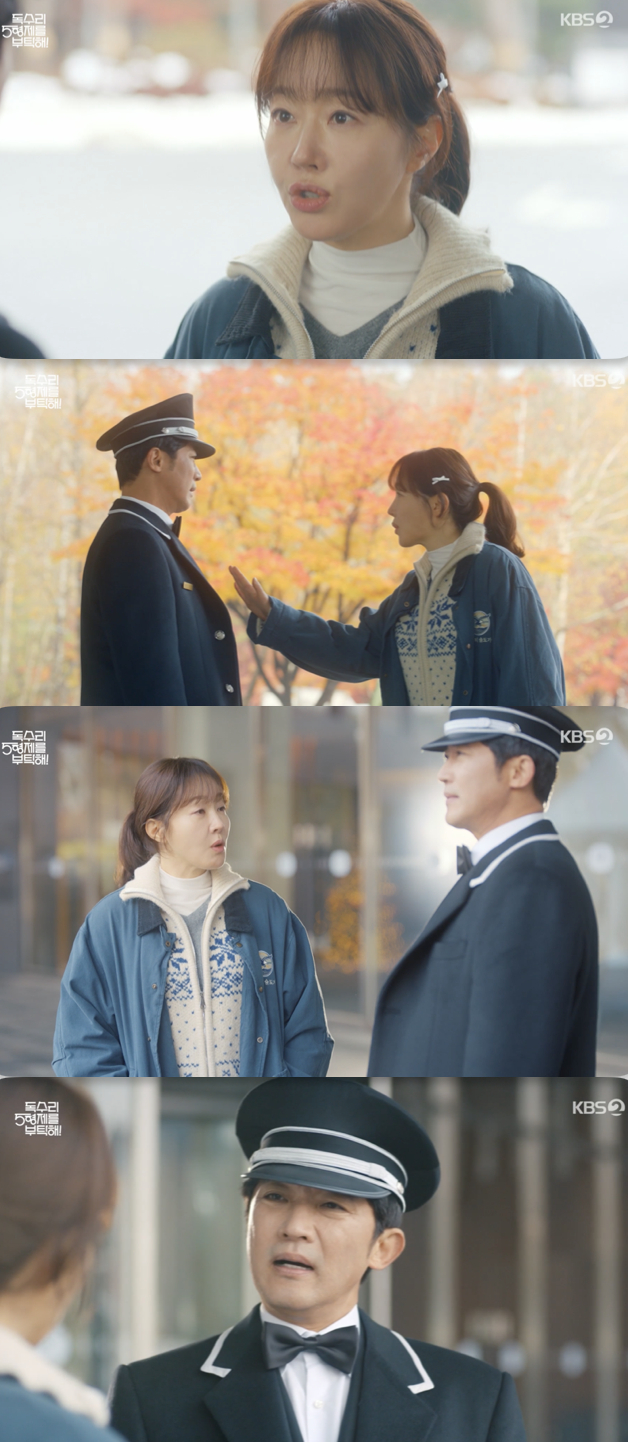 [스타뉴스|정은채기자]/사진='독수리5형제를부탁해'방송화면캡쳐'독수리5형제를부탁해!'에서엄지원의도끼병이발동됐다.8일방송된KBS2TV주말드라마'독수리5형제를부탁해!'4회에서는한동석(안재욱분)에게드레스수선비를요구하는마광숙(엄지원분)의모습이그려졌다.앞서동석은먼저떠나보낸아내를보러납골당에갔다가광숙과우연히마주쳤다.이때광숙이계단을내려오다가중심을잃고쓰러질뻔했고,이를발견한동석이재빠르게붙잡아큰사고를막을수있었다.동석은자신을뿌리친광숙이결혼식장에서봤던인물과같은사람이라는것을알아챘다.이날광숙은호텔에서도어맨일을하며방송촬영중인동석을우연히보고선곧장달려가"아저씨는제웨딩드레스를찢은가해자다"라고따지며수선비를요구했다.그러자동석은"나야말로당신때문에허리를다쳐서난감하다.납골당생각안나냐"라고맞받아쳤다.하지만광숙은물러서지않고"남의드레스찢었으면책임달라"라고닥달했다.결국동석은명함을건네며"이명함갖고커피숍가서커피한잔하고있어라.지금업무중이니까"라고했다.그러나광숙은"지금나한테작업거는거냐.나아저씨랑커피마실생각없다.안주면호텔사장찾아갈것"라고오해하는건물론협박까지해동석을어처구니없게만들었다.정은채기자[email protected]©스타뉴스&starnewskorea.com,무단전재및재배포금지