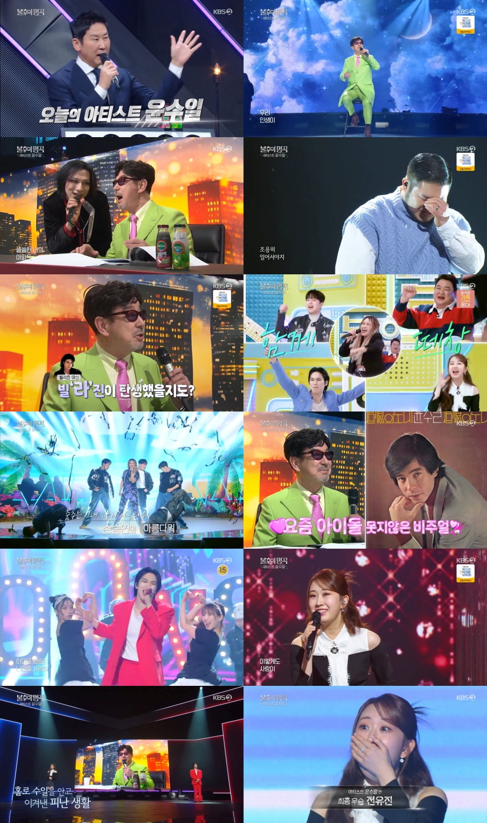 [텐아시아=최지예기자]/사진=불후의명곡스무살이된전유진이승률100%를달리던라키를꺾고최종우승의자리에올랐다.실연의아픔을밝힌전유진의저음보컬이‘사랑만은않겠어요’와제대로맞아떨어졌다.지난22일방송된KBS2‘불후의명곡’694회는‘아티스트윤수일’편으로꾸며져크랙샷,길구봉구,손승연,라키,전유진등이차례로무대에올라윤수일의명곡을다시해석했다.전국시청률은5.3%로동시간시청률1위를기록했다.이는무려107주부동의1위로‘토요예능절대강자’자리를이어갔다.본격적인경연에앞서‘아파트역주행’의주인공,윤수일이신곡‘꿈인지생신지’로무대를후끈달아오르게했다.윤수일은‘영원히행복하게지내자’라는메시지가담긴이곡을따뜻한목소리로편안하게불러내보는이들의미소를자아냈다.이어크랙샷의이름이가장먼저호명되며오프닝을열었다.42년만에역주행신화에성공한‘아파트’를선곡한이들은강력한헤비메탈버전의‘아파트’를선보였다.강렬한밴드사운드의향연이모두를압도하기충분했다.크랙샷의보컬빈센트는아티스트석으로올라윤수일옆에서소름끼치는고음을발산하는등그야말로파격적인록앤롤무대를펼쳐냈다.크랙샷의무대에대해윤수일은“네분이연주하고노래하는데사운드가아주좋더라.빈센트의보이스가스콜피온스를연상케하더라.정말대단했다”라고칭찬했다.길구봉구가두번째공의주인공이었다.길구봉구는‘찻잔의이별’을선곡,발라드의정수를오롯이보여줬다.길구봉구의각각다른목소리가하모니를이루며곡을더욱풍성하게완성시켰다.길구는노래하던중감정이북받친듯눈물을쏟아곡의무드가더욱배가됐다.이별의감성이무대곳곳에펼쳐지며감정의동요가큰무대였다.윤수일은또길구봉구의무대에대해“보컬의선생님이라는타이틀에걸맞게두분의노래가정말감동적이고훌륭했다.길구씨는오늘감정에젖어서노래부르는모습을봤다.정말좋았다”라고칭찬했다.첫번째승부는길구봉구가크랙샷보다많은표를얻어1승을차지했다.세번째무대는손승연이‘아름다워’로바통을이어받았다.손승연은이번무대에서강렬한퍼포먼스에도전해모두의시선을사로잡았다.손승연은댄서들과함께안무를맞춰군무를선보이면서엄청난가창력을발휘해눈과귀를즐겁게만들었다.‘괴물보컬’이라는별칭이있을만큼인정받은가창력은물론이고,퍼포먼스실력에서도출중한실력을뽐내놀라움을안겼다.손승연의무대에대해윤수일은“원곡을바탕으로해서변화한편곡과창법을많이칭찬해드리고싶다.아름답게들었다”라며엄지를치켜들었다.손승연이길구봉구보다많은득표로승자석에앉았다.승률100%에빛나는라키가네번째무대를밟고‘황홀한고백’으로무대를꾸몄다.열정의빨간슈트셋업을입은라키는폭발적인퍼포먼스와가창력이동시에겸비된무대로모두의박수를자아냈다.라키는무대를종횡무진하며황홀한감정을펼쳐냈다.라키만의색깔로재해석된‘목꺾기’퍼포먼스가어깨를들썩이게만들었다.윤수일은과거머리를튕기던군무를처음으로무대에올렸던것을돌아보며“우리라키군은골반을튕기는데춤을보면서굉장히섹시하더라.저는상체위주로했는데지금은세상이변해서하체위주로한다”라며감탄했다.라키가손승연의2승을저지하고승자석에앉았다.마지막은전유진이‘사랑만은않겠어요’로피날레를장식했다.마이크하나만으로승부를보겠다고밝힌전유진은무대의기승전결을쥐락펴락하며다양한분위기와무드를풍겨냈다.갓스무살이된가수라고는믿기어려운깊은감성이우러나왔다.스스로강점이라고꼽은저음보이스가무대의압권이었다.전유진의무대에대해윤수일은“너무나표현을잘해주어서어머니모습이잠시나마떠올랐다.앞으로우리가요계의훌륭한재목감이될것같다”라고칭찬과격려를전했다.윤수일은무대를마무리하며“이기고지고하는그런경연이지만오늘노력한것에대해서깊이감사를드리고수고하셨다는말씀을드리고싶다”라고후배들에게고마운마음을전해훈훈함을안겼다.최종승부에서라키의승률100%기록이깨지며놀라움을선사했다.전유진이라키를꺾고최종우승트로피를품에안았다.이번특집은‘42년만역주행신화’의주인공윤수일의다채로운음악세계와비하인드스토리가소개되며알찬시간을꾸몄다.또,크랙샷의헤비메탈,길구봉구의발라드,손승연의퍼포먼스도전등이풍성한무대를꾸며냈다.여기에강점을제대로보여준‘퍼포먼스킹’라키와‘저음보이스트로트퀸’전유진의무대가눈과귀를모두사로잡기도했다.최지예텐아시아기자[email protected]©텐아시아.무단전재및재배포금지.