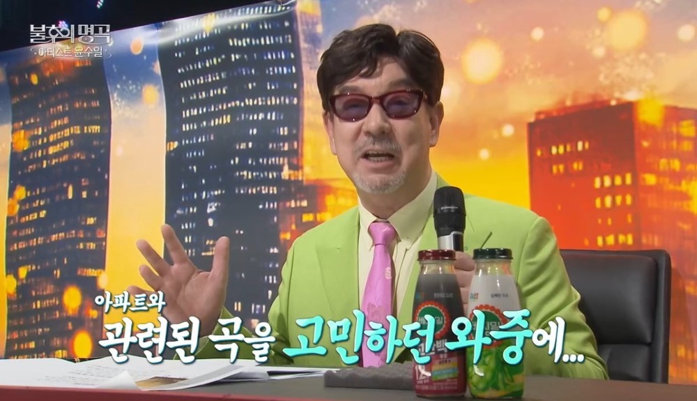 KBS2‘불후의명곡’KBS2‘불후의명곡’[뉴스엔이슬기기자]윤수일의'아파트'탄생비화를전했다.2월22일방송된KBS2‘불후의명곡’(연출박민정박형근김성민박영광)은'윤수일특집'으로진행됐다.이날MC신동엽은“‘아파트’가친구의이별을보고만든곡이라고하더라”라고윤수일에물었다.윤수일은“1980년대사회적화두가아파트였다.당시아파트는서민들의로망이었다"라고입을열었다.그는"서민들의마음을담은곡을만들어야겠다고생각하던차에친구가찾아왔다.친구가자기애인이살던아파트에가서초인종을눌렀는데,이미떠나고거기없었다더라.그런슬픈사랑이야기를듣고애절함을담아노래하기도했다.5분만에결정한곡”이라고설명했다.신동엽은“당시아파트붐이불었으니‘아파트’가된거지,빌라붐이었으면제목이‘빌라’였겠다”고말했다.그러자윤수일은“내가’빌리진’이란노래를만들었다면아마마이클잭슨이못나왔을것”이라며너스레를떨었다.한편'불후의명곡'은여러가수들이다양한장르의명곡을재해석해부르는프로그램이다.뉴스엔이슬기reeskk@기사제보및보도자료[email protected]ⓒ뉴스엔.무단전재&재배포금지Copyright©뉴스엔.무단전재및재배포금지.