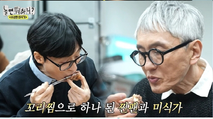 [스포츠조선고재완기자]'국민MC'유재석이'고독한미식가'마츠시게유타카의비밀맛집까지공유받으며'성덕'이됐다.22일방송된MBC'놀면뭐하니?')는일본인기드라마'고독한미식가'의주인공'고로상'마츠시게유타카와배우심은경이함께한'수상한미식가',디저트마니아주우재가이끄는'달달한미식가'편으로꾸며졌다.과메기식당에서마츠시게유타카와만난유재석은찐팬임을밝히며,'고독한미식가'의먹방1열직관에행복해했다.유재석은마츠시게유타카에게"저랑닮았다"면서내적친밀감을표현했지만,마츠시게유타카는"안경말씀이신거죠?"라며닮은꼴을거부해웃음을자아냈다.마츠시게유타카는날생선을싫어하지만회를때때로먹고초밥은먹는다는유재석의까다로운음식취향에"이상한편식가네요?"라며신기해했다.이이경은그래서친구,가족들이절레절레한다며음해를시도했고,유재석은"나에대해오해하시겠어"라며억울해했다.이이경은마츠시게유타카에게유재석을아는지물었다.마츠시게유타카는"일본에서아주유명한개그맨'아카시야산마'가있는데,한국에서유재석씨가같은레벨(국민MC)이다"라고비유했다.이이경은"(유재석이)대상20개를탔다"라며대리자랑을했다.마츠시게유타카는일본국민배우라는표현에겸손해하면서"심은경씨가일본에서유명하다"라고칭찬을주고받아훈훈함을자아냈다.한편평소소식으로형들의구박을받던주우재는그간의설움을씻어낼기회에의욕을불태웠다.설탕한정대식가인'달달한미식가'주우재는"복수의시간"이라며하하,KCM,박진주,미주를데리고'달달로드'를떠났다.'한식파'하하와KCM은아침부터쿠키,케이크등'모닝디저트'를먹는주우재의코스에밥타령을했고,주우재는2차는김치를주겠다며달랬다.하지만김치는그김치가아니었다.'김'으로크림'치'즈를김밥처럼말아만든신메뉴가등장해반전을안겼다.'달달로드'의종착지는사찰이었다.멤버들은산채비빔밥을애타게찾았지만,주지스님은밥때가지났다고말해모두를망연자실하게했다.하하는디저트악몽을떠올리며하소연했지만,스님은차와곁들일상상치도못한MZ디저트두바이초콜릿을준비했다.그와중에KCM은사찰소개팅'나는절로'를진행하고있다는스님의말에"혹시결혼하셨습니까?"라는아찔한질문을던졌다.하하는벌칙으로두바이초콜릿을먹으라했고,KCM은무릎을꿇고사죄해폭소를유발했다.하하가달달함에절여져국밥을외치고있을때,마츠시게유타카는한국인의소울푸드꼬리곰탕에첫도전중이었다.고기를따로빼놓고국물에밥을말아먹는유재석을포착한마츠시게유타카는그대로따라하며꼬리곰탕을200%즐겼다.유재석은"형님이랑많이친해진것같은데맛집을공유해주세요"라며요청하기도했다.마츠시게유타카는오사카사카이에있는오코노미야키비밀맛집을공유하며초대까지했다.이이경은유재석을제치며"전진짜간다"라며어필했고,유재석은"나중에일본으로미식로드가겠다"라고한일국민스타의재회를예약했다.식사를마친뒤,심은경은치아에무언가낀것같다며잠시자리를비우려고했지만,이이경은계속붙잡으며눈치와맞바꾼친절을베풀었다.이를지켜보던유재석은"오늘은경이가이경이때문에앓아누울것같다"라며놀렸다.심은경은이이경과함께한소감에대해'진동벨웃음소리'로난처한심경을표현해모두를폭소케했다.유재석은"나기념사진잘안찍는데이번엔찍어야지"라며개인휴대전화로마츠시게유타카,심은경과인증샷을남겨훈훈함을자아냈다.한편이날방송은2049시청률은3.1%(이하닐슨코리아집계,수도권기준)를기록했고가구시청률은4.6%를나타냈다.최고의1분은유재석이개인휴대전화를꺼내마츠시게유타카,심은경과기념사진촬영을하고선물을주고받는장면으로,분당최고시청률이6.4%까지올랐다.고재완기자[email protected]©스포츠조선.무단전재및재배포금지.