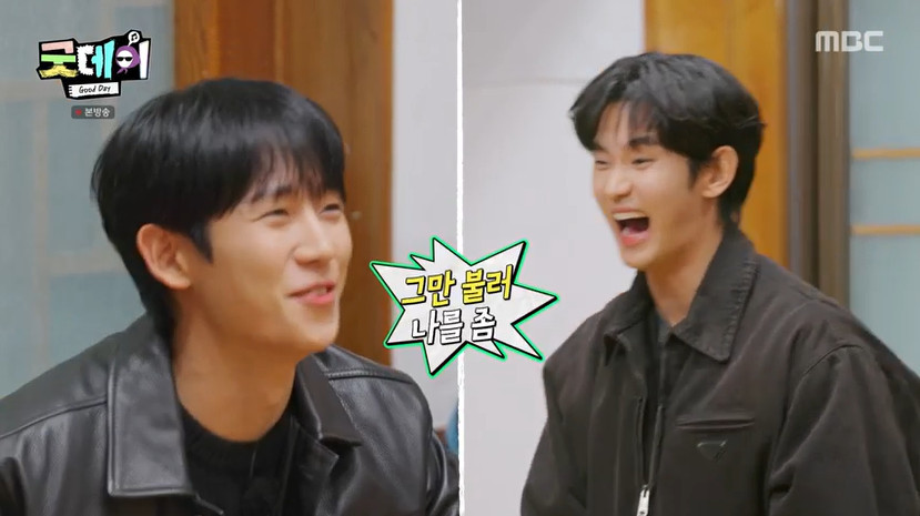 MBC‘굿데이’캡처MBC‘굿데이’캡처[뉴스엔장예솔기자]배우김수현과정해인이티격태격절친케미를드러냈다.2월23일방송된'굿데이'에서는지드래곤,김수현,정해인,임시완,이수혁,황광희까지역대급라인업의88년생스타들이한자리에모였다.이날김수현은이전촬영으로인해여유를느낀듯'나는솔로'콘셉트로진행된88나라에빠르게적응했다.자기소개시간이되자김수현은"원체내성적이고방어적이고폐쇄적인성격이었다.2024년이아니었으면이프로그램섭외를받고흔쾌히'콜'하지않았을텐데올해성격이많이바뀌었다"고운을뗐다.지드래곤과황광희가공감을표하자김수현은"우리가나이를먹은거다.금방아저씨다.성격이바뀐덕분에이프로젝트에참여할수있게돼서너무영광이다"면서"데뷔한지이제18년차가됐다.데뷔하고나서보니까동갑내기들을만나는게진짜쉬운일이아니더라.이자리가뜻깊고의미있게잘됐으면좋겠다"고바람을전했다.김수현은모창개인기로태양의'눈,코,입'을부르기도.생각보다썰렁한반응에김수현은"다들표정이안좋다"며부끄러워했고,황광희는"김수현씨는이렇게안해도된다"고말렸다.이어황광희는김수현이출연했던드라마'눈물의여왕'을언급하며"해인이많이부르던데한번해달라"고요청했다.해인은'눈물의여왕'여주인공인김지원의캐릭터명.목을푼김수현은크게"해인아"라고외쳤고,정해인은"나를좀그만불러"라고반응해모두를폭소케했다.뉴스엔장예솔imyesol@기사제보및보도자료[email protected]ⓒ뉴스엔.무단전재&재배포금지Copyright©뉴스엔.무단전재및재배포금지.