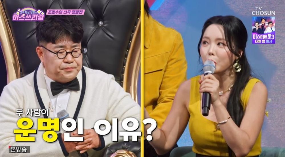 [TV리포트=한수지기자]천재작곡가조영수가우승자에게신곡선물을약속했다.26일방송된TVCHOSUN'미스쓰리랑'42회에서는천재작곡가조영수와함께하는신곡쟁탈전이펼쳐졌다.이에조영수사단의멤버로홍진영,양지은,SG워너비김용준,마이트로가출격했다.이날조영수는SG워너비의'라라라'를부르며등장했다.그는임영웅의'이제나만믿어요',홍진영의'사랑의베터리',장윤정의'옆집누나',유산슬의'사랑의재개발'등수많은트로트명곡을비롯해SG워너비,이승철,씨야,다비치등많은가수들의히트곡을작업해가요계의모차르트로불린다.홍진영은조영수와의인연에대해"공교롭게도(조영수)오빠랑생일이똑같다"라며"더놀라운사실은제가영수오빠를트로트계에입문을시켰다"라고밝혔다.조영수는홍진영의'사랑의베터리'로처음으로트로트계에입문했다고.조영수는"제가곡쓸때상상했던이미지가딱있으면항상진영씨는생각했던것보다그이상으로소화를해냈다.'내가쓴곡이이렇게좋았나'라고저도놀랄만큼너무소화를잘하고노래를잘하는친구다.더중요한건인성까지좋다"라고칭찬했다.홍진영에대한칭찬이술술나오는모습에붐은"인성얘기까지"라며"대본이따로있었나요?"라고너스레를떨었다.이어SG워너비와의인연도언급됐다.붐은"용준씨를처음만났을때가궁금하다.용준씨가또외모가또훈남이잖냐"라고물었다.이에조영수는"녹음실에서이제새멤버를봤을때아이돌멤버로들어가도손색없을만한정말잘생긴친구였다.이친구는이정도로생겼으면노래는잘못하겠구나했는데녹음부스에딱들어갔는데목소리가너무좋았다.맑고그런순수한음색인데또되게슬프게부르는제가제일좋아하는목소리타입이다"라며당시를회상했다.이를놓지치않고붐은"SG워너비멤버중에서도가장좋아하는목소리였냐"라고물었고,조영수는당황해하며"공동1등이었다"라고답했다.다음은조영수가데뷔시킨트롯돌마이트로가소개됐다.붐은"마이트로멤버들은이제조용수씨를뭐라고부르냐"라고궁금해했고,멤버들은"저희는조영수PD님을아버지라고부른다"라고말했다.이에조영수는"언제?"라고의아해했고,멤버들은"아빠"라고외쳐웃음을자아냈다.조영수는"처음미스쓰리랑섭외해왔을때작곡가니까어떤선물을드려야될것같았다.제가드릴수있는거는좋은곡밖에없는것같아서오늘노래를들어보고저한테제일마음에드는목소리를찾으면그분께제가곡을선물해드리기로약속하고나왔다"라고말해출연진들을술렁히게했다.'미스쓰리랑'은'미스트롯3'TOP7정서주,배아현,오유진,미스김,나영,김소연,정슬과함께하는음악쇼로매주수요일밤10시방송된다.한수지기자[email protected]/사진=TVCHOSUN'미스쓰리랑'Copyright©TV리포트.무단전재및재배포금지