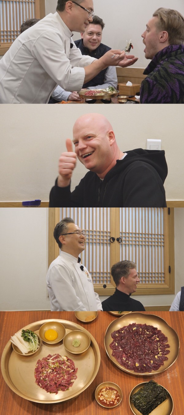 사진=MBC에브리원어서와한국은처음이지?[스포츠투데이김태형기자]한식에푹빠진네덜란드셰프들이대한민국16대조리명장안유성셰프와만난다.27일방송되는MBC에브리원'어서와한국은처음이지?'에는호스트맥스와네덜란드셰프들이50년전통나주곰탕집을방문,안유성셰프와깜짝만남을갖는다.호스트맥스가준비한서프라이즈투어장소는전라도의대표향토음식인나주곰탕집이다.추운겨울뜨끈한국물을기대하며음식을주문한이들앞에예상치못한인물이등장하는데,바로'흑백요리사'백수저로출연한대한민국16대조리명장안유성셰프다.환상적인생선손질로화제를모았던안유성셰프가나주곰탕집에나타나궁금증을자아낸다.안유성셰프와의만남만큼셰프친구들이주목한것은한우생고기다.이들은상상하지도못한특수부위이름에놀라고,쫄깃한맛에또한번놀란다.이어지는친구들의충격적인맛평가에MC이현이는"저거무서운말아니에요?"라며조심스러워한다.신선한문화충격을선사한생고기먹방도잠시,안유성셰프는네덜란드셰프들의두눈이번쩍뜨일깜짝제안을건넨다.과연대한민국조리명장이네덜란드한식흑수저들에게제안한특급기회는무엇일지본방송에서만나볼수있다.[스포츠투데이김태형기자[email protected]]Copyright©스포츠투데이.무단전재및재배포금지.