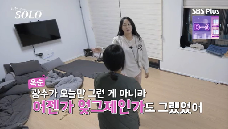 '나는솔로'26일방송SBSPlus'나는솔로'캡처(서울=뉴스1)이지현기자=24기옥순이광수의언행을알렸다.지난26일방송된SBS플러스,ENA예능프로그램'나는솔로'에서는24기옥순이광수와데이트한뒤그의비밀스러운언행을순자에게폭로했다.옥순은순자와단둘이있는자리에서"광수가편지줬어?다알고있지"라는말을꺼냈다.특히"너무티났어.광수가나한테표받으려고일부러행동하는게티났어"라며"최종선택을나한테받으려고수작부린게티나더라"라고재차밝혔다.이어"광수가오늘만그런게아니라계속그랬다.난다알고있었잖아.순자한테직진한다고말한걸알고있는데,내가모른척하고물어봤어.너무티나고,장황하게얘기를늘어놓더라"라고전했다.SBSPlus'나는솔로'캡처순자가당혹감을감추지못했다."편지준건어떻게알았어?"라면서"뭐야?충격포인트인데?뭐지?머리가복잡해졌다"라고털어놨다.이런상황을전혀모르는광수가영철과대화했다.그는"옥순에대한호감이올라갔다.시간이아쉬웠다"라고하더니"오히려옥순과밖에서만났으면잘됐을것같아.이상황이둘을더얼어붙게만든것같다.둘사이에다른남자,여자가많으니까"라며착각에빠져있었다.광수는또"여기에는장애물이많지않나?오히려밖에서소개팅하면잘되기딱좋은성격이라,사귈수있을것같은데"라고말하는등미련이가득한모습을보였다.이를본MC데프콘이"순자한테편지를줘놓고,계속저렇게옥순얘기를하면어떡해?"라며안타까워했다[email protected]©뉴스1.Allrightsreserved.무단전재및재배포,AI학습이용금지.