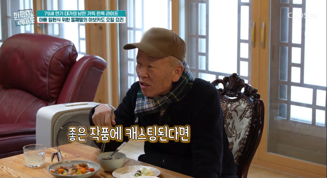 배우임현식이연기에대한갈망을드러냈다.iMBC연예뉴스사진26일(수)방송된TV조선‘퍼펙트라이프’에서임현식이1,000평한옥에서보내는근황을공개했다.이날임현식은지난1999년도에직접지은한옥에서혼자지내는일상을보여줬다.이어둘째딸이그를찾아와함께식사하며연기활동에관해물었다.iMBC연예뉴스사진iMBC연예뉴스사진임현식은“좋은작품에캐스팅된다면노인역할을마음껏즐기고싶은데”라고밝혔다.이어“그가능성이없는가봐.10년동안들어오지도않고”라며아쉬움을드러냈다.딸은“열려있다고얘기하고다니세요.건강하셔야오래작품활동하시죠”라며아버지를응원했다.10년전임현식이심근경색진단을받은적있기때문.임현식도“노배우의조건은뭐니뭐니해도건강”이라고말했다.iMBC연예뉴스사진iMBC연예뉴스사진한편,‘퍼펙트라이프’는스타의일상을관찰해전문가군단이특급솔루션을제시하는프로그램으로매주수요일오후8시에방송된다.iMBC연예김혜영|사진출처TV조선Copyright©MBC연예.무단전재및재배포,AI학습금지.
