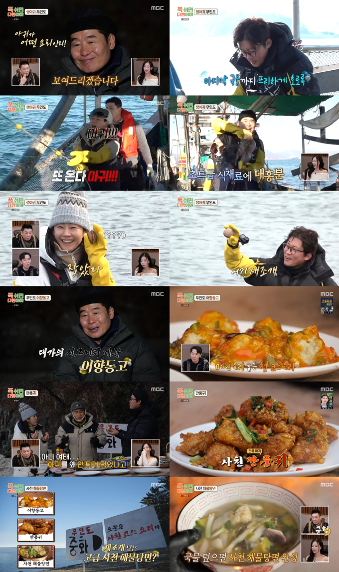 ‘푹쉬면다행이야’아귀깐풍기성공…시청률6.8%(사진:MBC'푹다행')‘푹쉬면다행이야’이연복이방송최초로아귀로중식을만드는데성공했다.3월3일방송된MBC예능프로그램‘푹쉬면다행이야’(연출김명진,신현빈,이준범,김기호/작가권정희/이하‘푹다행’)38회는임원김대호,중식대가이연복,그리고명세빈,양세형이함께하는무인도중화반점두번째이야기로꾸며졌다.시청률조사회사닐슨코리아에따르면이날방송은전국기준6.8%의시청률을기록하며,월요일방송된모든예능프로그램중1위를차지했다.채널경쟁력과화제성을가늠하는핵심지표인2049시청률도월요일예능전체1위를달성했다.이날김대호,이연복,명세빈,양세형은아침부터아귀를잡기위해바다로나섰다.손질도까다롭고,비싸서중식재료로는잘쓰지않는아귀.방송최초로아귀로중식만들기에도전하는이연복은“한번보여주겠다”며자신감을내비쳤다.이들은깊은바다에살고있는아귀를잡기위해바닥까지내려놓은대형그물을끌어올렸다.그물에는많은해산물들이걸려나왔다.대형소라,꽃게,조기,양태,물메기,붉바리,갑오징어등종합선물세트처럼다양한해산물이잡혔지만이들이바라는아귀는좀처럼모습을드러내지않았다.지쳐가는일꾼들을위해선장님은즉석에서갓잡은꽃게로간장게장을만들어주셨다.선장님만의특제양념이들어간간장게장에이연복도“세상엔참다양한맛이있다”며감탄했다.김대호는그만먹고일하자는선장님의말에도“먼저일들하세요”라며간장게장에서빠져나오질못했다.이를본붐은“프리하더니과감해졌어”라고분석해웃음을자아냈다.그물이거의끝나갈때쯤,극적으로아귀가잡혔다.이연복은그물에서커다란아귀를빼내다가손을물릴뻔한상황에서도“이렇게큰걸잡을수있으면열번물려도괜찮아”라며만족해하는모습을보여줬다.이들은조업을마치고손님들이오기전새참으로허기를달랬다.이연복은조업을통해잡아온갑오징어로수제비를만들기로했다.이연복의애제자명세빈은굴과사과를넣은굴사과겉절이를만들었다.군침을자극하는수제비와겉절이조합은시청자들을사로잡았다.또한이들은푸짐한손님식사를위해인근바다에서해루질까지했다.이때명세빈이시가1kg에15만원이라는소고기보다비싼조개,새조개를잡는데성공했다.이와함께소라,낙지등다양한해산물을추가로확보하며풍성한메뉴를기대하게했다.이연복은매콤한‘사천코스요리’를기획했다.첫번째로그는자신의시그니처메뉴인‘어향동고’를만들었다.다진소라와생선을완자로만들어표고버섯위에얹고,이를찜기로쪄낸뒤대가만의비법이담긴매콤한소스를부어만드는어향동고는비주얼만으로도모두를사로잡았다.탱탱한완자의식감과소스의매콤함이맛으로도감탄을자아냈다.이어이연복은손질한아귀로깐풍기를만들었다.대가의스킬로완성된아귀튀김은겉은바삭하고속은촉촉해모두를놀라게했다.여기에깐풍소스를입히자오직무인도중화반점에서만먹을수있는‘깐풍귀’가완성됐다.이를맛본김대호는“왜아귀를튀길생각을못했을까”,양세형은“내가팔고싶다”고말하며극찬했다.이연복역시“갓잡은생아귀를튀겼기때문에,이건식당에서메뉴로만들어도이맛이안난다”라며특별함을강조했다.마지막으로이연복은‘사천해물탕면’을만들었다.얼큰한국물에새조개,낙지,소라등을넣어만든해물탕면은추위에얼어붙은몸까지녹이며모두를사로잡았다.이날방송역시오직‘푹다행’의무인도레스토랑에서만맛볼수있는특별한요리들이이어지며시청자들의침샘을자극했다.한편방송말미공개된예고편에서는이연복에버금가는중식대가여경래와철가방요리사임태훈이함께하는‘무인각’오픈모습이담겨시청자들의기대를더했다.MBC‘푹쉬면다행이야’는매주월요일밤9시방송된다.박지혜기자[email protected]뉴스연예팀기사제보[email protected]©bnt뉴스.무단전재,재배포및AI데이터활용금지
