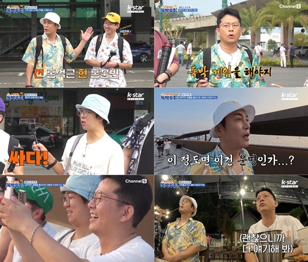 개그맨김대희와김준호,홍인규가유쾌한에너지를폭발시키며웃음을선사했다.김대희와김준호,홍인규는29일(어제)방송된‘니돈내산독박투어3’(채널S,SK브로드밴드,K·star,AXN공동제작)에서매니저들과환상의호흡을뽐내며안방극장을즐거움으로가득채웠다.이날방송에서멤버들은매니저들과함께베트남의몰디브푸꾸옥으로여행을떠났다.이들은등장부터시끌벅적한분위기로관심을모았다.개그맨김대희와김준호,홍인규가유쾌한에너지를폭발시키며웃음을선사했다.먼저홍인규가제안한만보기게임으로각자매니저와팀을이루어교통비독박자를정하기로했다.김준호는게임이시작되자만보기의숫자를높이기위해격렬하게몸을흔들었지만,결국가장낮은수치를기록했다.이에따라승패의향방은그의매니저에게넘어갔다.다행히김준호의매니저가꼴찌를면했고과연게임의최종패자는누구일지긴장감을불어넣었다.김준호팀에역전당한홍인규는최종독박자를정하는개인전에서이기기위해열정을다하는모습은웃음을자아냈다.치열한승부결과홍인규는결국패배했고교통비를부담하게됐다.그런가하면워터파크로이동하는차안에서멤버들과매니저들은가족여행에대한이야기를나누며훈훈한분위기를자아냈다.여기에서여행9계명을어기는사람이독박자를하기로정했고과연누가독박을쓰게될지호기심을자극했다.뿐만아니라간식과사진비용은물론키스권을걸고진행된게임은손에땀을쥐게했다.접전끝에김대희는독박자가되었고그와키스할상대(?)로김준호매니저가뽑히며현장은초토화됐다.이내일몰을배경으로키스브릿지에서김대희와김준호매니저가벌칙을수행하는장면이펼쳐지며현장은웃음바다가됐다.한편워터파크에서즐거운시간을보낸독박즈는저녁식사를위해바비큐맛집으로이동했고,이들의맛깔난먹방은보는이들의군침을돌게했다.마지막까지시청자들에게폭소를유발하며즐거움을더했다.이름궁합대결에서독박자로지목된김준호는억울함을토로하다가앞서정했던여행9계명을연속으로어겼고순식간에2독을적립했다.이에김준호는“2독입니다.건들지마세요”라며허탈해했다.이렇듯특유의입담과리액션으로웃음을선사한김대희와김준호,홍인규의코믹한모습을확인할수있는‘니돈내산독박투어3’는채널S,K·star,AXN에서매주토요일저녁8시20분방송된다.[금빛나MK스포츠기자][ⓒMK스포츠,무단전재및재배포금지]Copyright©MK스포츠.무단전재및재배포금지.