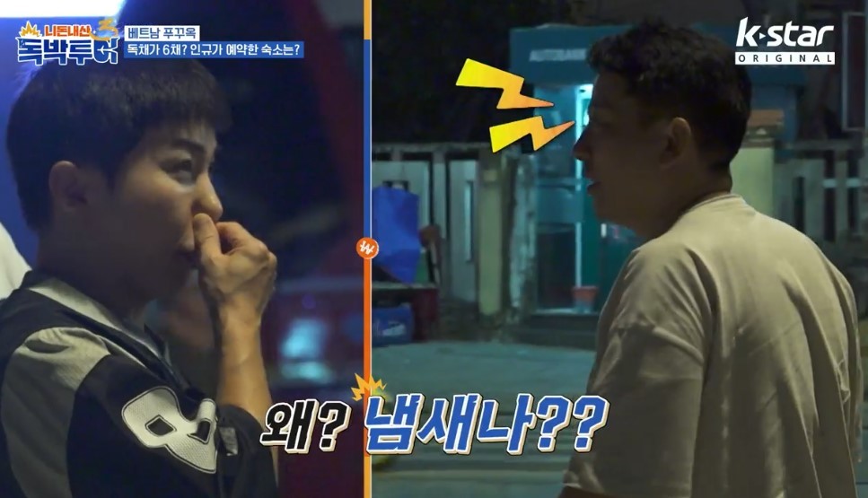 채널S,K·star,AXN예능‘니돈내산독박투어3’채널S,K·star,AXN예능‘니돈내산독박투어3’[뉴스엔이슬기기자]유세윤이김준호앞에서코를잡아웃음을더했다.4월12일방송된채널S,K·star,AXN예능'니돈내산독박투어3'에서는독박즈김대희,김준호,장동민,유세윤,홍인규와매니저들의베트남푸꾸옥여행기가이어졌다.이날멤버들은럭셔리베트남마사지와오징어잡이체험으로운명이갈렸다.김준호,김대희등은배를타고바다로나가오징어를잡았고,장동민유세윤홍인규는고급마사지를받았다.잡히지않는오징어에고생하고온멤버들은숙소로향할준비를했다.유세윤은이동을앞두고코를막아시선을끌었고,김준호는"왜냄새나냐"라고물었다.유세윤은아니라며웃었다.한편'독박투어'는게임을통해진출연자가여행비의독박을쓰는전무후무여행기를그린다.뉴스엔이슬기reeskk@기사제보및보도자료[email protected]ⓒ뉴스엔.무단전재&재배포금지Copyright©뉴스엔.무단전재및재배포금지.