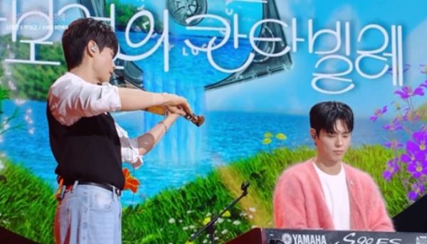 ⓒKBS2'칸타빌레'[스포츠한국김현희기자]'더시즌즈-박보검의칸타빌레'가다양한색깔의청춘으로금요일밤을물들였다.25일방송된KBS2TV뮤직토크쇼'더시즌즈-박보검의칸타빌레'에는밴드루시(LUCY),그룹멜로망스,투어스(TWS),배우정은지,이준영이출연해다채로운음악과무대로특별한금요일밤을선사했다.루시는'아니근데진짜'로오프닝무대를장식하며청량하고경쾌한에너지를전했다.루시는'아니근데진짜'가사에주접멘트를녹였다며'박보검맞춤형'주접멘트를선보여훈훈한분위기를자아냈다.최상엽은2년전연탄봉사때박보검을만난적이있다는인연을소개해박보검을놀라게했다.최상엽은"팬처럼보일까봐따로인사를드리지않았다"며"그날온세상연탄은나만묻은것같았다"며겸손한멘트를덧붙이기도했다.루시는박보검과특별한무대를완성했다.건반을맡은박보검은바이올린을연주하는신예찬과'하울의움직이는성'OST'인생의회전목마'합주로어디서도볼수없는컬래버를펼쳤다.박보검의수준급연주에루시는"밴드하실생각없냐"며러브콜을보내웃음을자아냈다.또한루시는미니6집의더블타이틀곡'잠깨'와'하마'를라이브로선보이며봄날페스티벌현장에온듯한기분을안겼다.이어KBS2TV새수목드라마'24시헬스클럽'으로호흡을맞추게된정은지와이준영이'드림(Dream)'을부르며무대에등장했다.이준영은유독수줍어하는모습을보였으나힙합댄스배틀대회에나갔다는사실과함께즉석에서놀라운춤실력을선보여반전매력을발산했다.박보검은넷플릭스드라마'폭싹속았수다'에서인연을맺게된이준영에대해"번호교환후에반가웠다고문자를보냈는데답장을안하시더라"라고서운함을토로했다.궁지에몰린이준영은당황하면서"문자가누락됐다"고변명했으나객석에서야유가터져나와웃음을안겼다.노래와연기를모두섭렵한올라운더인만큼정은지,이준영의가창력이돋보이는무대도이어졌다.정은지는박보검,이준영과인연이있는가수의곡을골랐다며아이유의'아이와나의바다'를선곡했고감미로우면서도드라마틱한가창력과고음으로현장모두의감탄을터뜨렸다.이준영은박보검의피아노연주에맞춰나윤권의'나였으면'을가창하며호소력짙은무대를선보였다.이어정은지와이준영은'이밤이지나면'듀엣무대로환상의하모니를입증하며'24시헬스클럽'에서의'찰떡케미'를예고했다.ⓒKBS2'칸타빌레'이어멜로망스가등장해'동화'를부르며설렘가득한무대를꾸몄다.멜로망스는친구로는15년,팀으로는10년의인연을이어왔지만사이가소원해진적도있었다고밝혔다.정동환은"사소한다툼이있었다.'유희열의스케치북'에서사과의물꼬를틀려는데갑자기눈물이쏟아졌다"고당시를회상했다.김민석은"나는그때마음이꼬여있는상태였다.갑자기우니마음이혼란스럽더라"고덧붙였다.이내두사람은함께술을마시며솔직한마음을털어놓고화해하게됐다며불화를완벽하게잠식시켰다.멜로망스는1년11개월만에선보이는새앨범을소개하며'괜찮아사랑해'무대를선보였다.특히정동환은이번앨범을통해랩에도전했다며선글라스를낀채'YourWay(유어웨이)'무대를깜짝공개해놀라움을자아냈다.박보검은멜로망스의앞날과우정을기원하며'무엇을해야할까'서프라이즈무대를준비해두사람을뭉클하게했다.이어박보검과정동환이피아노를연주하고김민석이'선물'을불렀고관객들이떼창으로화답하며감동을선사했다.끝으로멜로망스는신곡'아무날의서프라이즈'무대를펼치며특별한금요일밤을마무리했다.'청춘대표주자'투어스는'내가S면넌나의N이되어줘','첫만남은계획대로되지않아'를부르며풋풋하면서도재기발랄한무대매너로이목을사로잡았다.투어스는한식사자리에서박보검과만났던인연을공개했고멤버중'형라인'은박보검과같은테이블에앉은반면,'막내라인'은같이앉지못했다고아쉬움을토로했다.이에박보검은투어스와번호교환을약속하며앞으로의인연을기대케했다.올해19세가된투어스막내경민은성인이되면하고싶은일에대해"밤10시넘어서형들과PC방에서'짜계치'를먹고싶다"며귀엽고엉뚱한목표를밝혔다.이에박보검은"'짜계치'를내가해주겠다","밤10시는너무늦다"라고호응해훈훈한미소를유발했다.이어투어스는정국의'Seven(세븐)','폭싹속았수다'OST의'내사랑내곁에'라이브에이어박보검의피아노연주에맞춰'너의이름'무대까지선보이며다양한색깔의청춘을선보였다.끝으로투어스는신곡'마음따라뛰는건멋지지않아?'무대로독보적인청량함을드러냈다.한편,감탄을자아내는웰메이드무대로꽉채운'더시즌즈-박보검의칸타빌레'는매주금요일밤10시KBS2TV에서방송된다.스포츠한국김현희기자[email protected]©스포츠한국.무단전재및재배포금지.