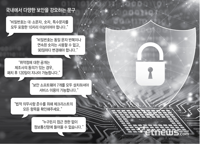 “비밀번호는대·소문자,숫자,특수문자를모두포함한10자리이상이어야하며,동일문자반복이나연속된숫자는사용할수없고,90일마다변경해야합니다.”이비밀번호정책은,과연개인이안전한패스워드를만들도록'유도'하고있는가?“취약점에대한공개는제조사의동의가있는경우,패치후120일이지나야가능합니다.”이정책은,과연기업이안전한개발과보안패치를책임있게수행하고,화이트해커가제보에나설'동기를부여'하고있는가?보안공학자로스앤더슨은“보안실패는나쁜설계만큼이나잘못된인센티브에의해자주발생한다”고말한다.사용자는왜안전하게사용하려고할까?개발자는왜보안을고려하며코드를짤까?공격자는왜어떤시스템은굳이해킹하지않으려할까?우리나라의보안정책은개인에게,기업에,국가에보안의동기를제공하고,적에게해킹하지않을동기를주고있는가?국내에서다양한보안을강요하는문구개인:보안을강요받는사용자위에서언급한비밀번호정책은,석달에한번씩기억하기어려운패스워드를생성해야하기때문에,오히려메모에적어두거나숫자만바꿔반복사용하는방식으로대응하게만든다.이러한문제점을인식한미국국립표준기술연구소(NIST)는2017년비밀번호정책가이드를개정하며,'대·소문자,숫자,특수문자조합'과'주기적변경강제'요구를폐기했다.이런정책들이사용자가'Password1!'에서'Password2!'로숫자만바꾸거나,모니터에포스트잇으로비밀번호를붙여두는행동을유발했기때문이다.대신NIST는데이터유출시에만비밀번호변경을유도하는정책으로전환했다.이는사용자가더길고기억하기쉬운패스워드를사용하고,다중인증(MFA)과같은추가보호수단에의존하도록유도한다.인터넷뱅킹환경도다르지않다.한국금융기관들은여전히다양한보안프로그램설치를요구한다.액티브X는사라졌지만,응용프로그램인터페이스(API)기반으로키보드보안,방화벽,백신등프로그램이사용자의동의를통해설치된다.사용자는대부분각프로그램의기능이나필요성을정확히알지못한채,반복적으로'다음'을누르며설치를진행한다.이과정에서보안에대한경각심은오히려무뎌지고,실제위험이발생해도기계적으로'동의'하는습관만남는다.2023년북한해커그룹이국내금융보안소프트웨어(SW)의취약점을악용한사례는이러한접근의한계를보여준다.애플의페이스아이디(FaceID)나삼성의지문인식처럼사용자경험을해치지않으면서도보안을강화하는방식은,사용자가자발적으로보안기능을사용하게만든다.편의성이곧보안동기가되는구조다.기업:체크리스트에서인센티브로한국의기업들은보안을종종비용으로인식한다.정보통신망법은다양한보안장비설치를의무화하고있지만,이러한포지티브규제는많은기업들이최소요건만충족하려는형식적대응으로이어진다.결과적으로최저가입찰을통한낮은품질의장비도입,실질적인운영·관리는뒷전이되는구조가반복된다.체크리스트중심의규제는기업이'체크항목'에만신경쓰게만들고,자사환경에적합한보안전략설계에는무관심하게만든다.보안은조직의구조,업무방식,위협모델에따라달라져야하지만,획일화된규제는이를반영하지못한다.미국식품의약국(FDA)은이런한계를인식하고,의료기기보안에대해'전수명주기보안관리'체계를요구한다.제조사는기기별위협모델을수립하고,설계단계부터보안대책을포함해야하며,FDA는이과정을종합적으로평가한다.이는단순한'기능보유'확인이아니라,위험기반접근에대한실질적인인센티브를제공하는방식이다.국내의취약점공개정책은여전히제조사의동의를전제로한다.패치후120일이지나야만취약점이공개될수있고,동의를받지못하면영원히비공개상태로남을수도있다.이는취약점패치에대한제조사의책임을흐리고,신속한대응을유도하지못한다.반면미국사이버인프라보안국(CISA)은2021년부터연방기관납품소프트웨어에대해취약점공개정책(VDP·VulnerabilityDisclosurePolicy)채택을의무화했다.이정책은보고자보호,대응기한명시,정보공개원칙을통해화이트해커에게는제보동기를,기업에는보안책임을명확히부여한다.결국기업의보안문화는단순한준수의무가아니라,실질적인효과를중심으로인센티브를설계할때바뀔수있다.보안을'비용'이아닌'가치'로인식하게만드는구조가필요하다.국가:모두에게신호를주는설계자한국의보안정책은강한규제와사후대응에집중돼있다.과학기술정보통신부내에'침해대응과'는있지만'침해예방과'는없다.구조적으로도'일어난뒤에대응'하는데초점이맞춰져있다는뜻이다.법령구조역시이흐름을강화한다.정보통신망법은'정부는정보통신망에대해취약점점검,기술지원등필요한조치를할수있다'고하면서도,다른조항에선'누구든지접근권한없이정보통신망에침입할수없다'고명시한다.결과적으로정부는민간시스템에대해사전점검이나실태파악을자율적으로수행하기어렵고,허락없이모의침투를시도할수있는법적근거도불분명하다.이러한구조는국가가새로운취약점(Log4j와같은)에대한실태를파악하거나,대비책을마련하는데제약을만든다.허락없이는점검도어렵고,실제문제가발생하기전까지는무엇이취약한지조차알수없다.반면적들은이구조를정확히알고있다.탐지당하지않고원