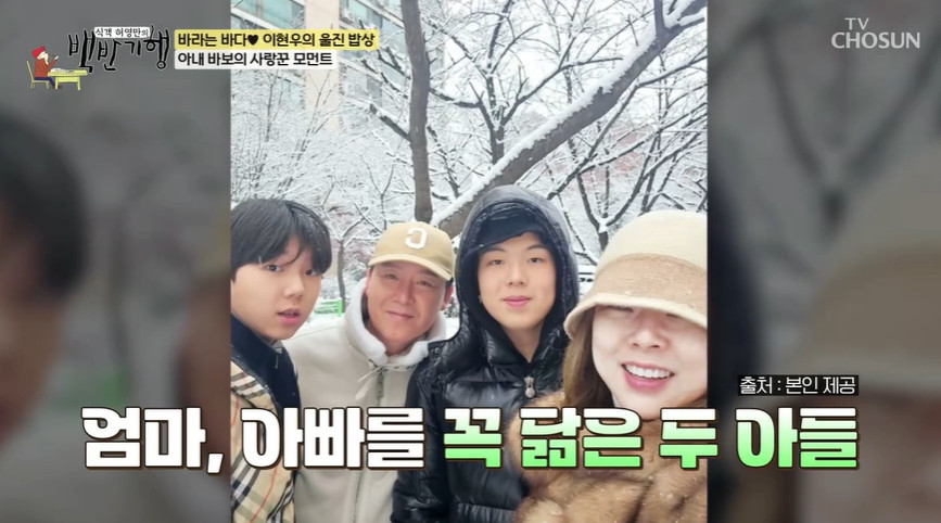 (엑스포츠뉴스김보민기자)이현우가두아들과아내를향한마음을고백했다.27일방송된TV조선'식객허영만의백반기행'(이하'백반기행')에는가수이현우가출연했다.이날허영만,이현우두사람은경상북도울진에위치한노포식당으로향했다.차돌박이와갓김치,관자를한번에즐기던허영만은"지금애들은몇살이냐"고물었고,이현우는14살,15살인두아들을언급했다.허영만이"딸낳을생각은없냐"고묻자이현우는난감해하며"딸을하나더원한다는얘기를하면제두아들한테는예의가아닌것같다","'아들이어때서요'라고생각할수있으니까"라고답변했다.이어"진짜애들은정말축복인것같다.애들하고있는시간이너무행복하다.아내한테제일고마운것들이참많은데제일고마운것중하나가이렇게생기고,말하고,행동하는두아들을선물해준거는평생갚아야할은인이라는생각이든다"고가족들을향한애정을드러냈다.이에허영만이"여기다녹화하고있다"고하자이현우는"그래서하는얘기다"며너스레를떨었다.한편,이현우는2009년13세연하아내와결혼해슬하에아들둘을두고있다.사진=TV조선방송화면김보민기자[email protected]©엑스포츠뉴스.무단전재및재배포금지.