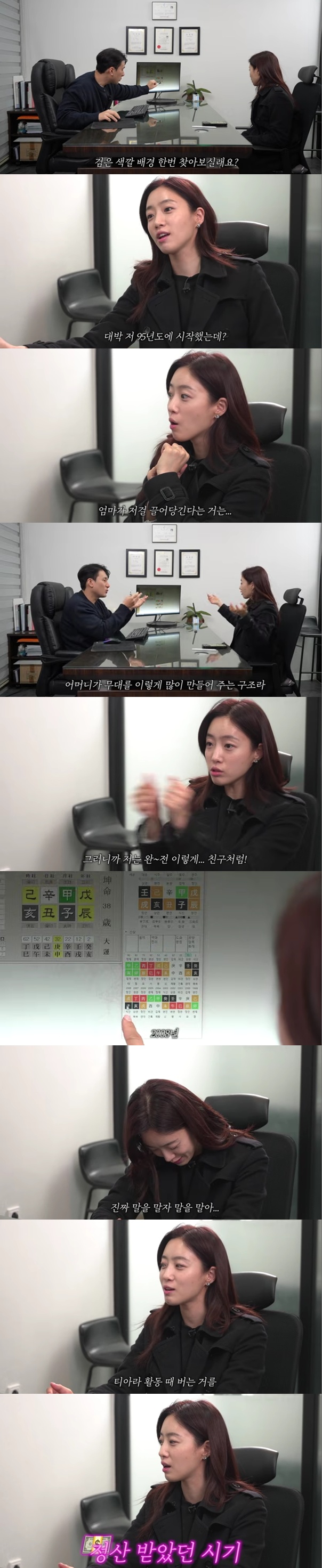 (엑스포츠뉴스김현정기자)티아라멤버이자배우함은정이과거슬럼프를떠올렸다.27일유튜브채널'함은정'에는'역대급사주풀이'라는영상이올라왔다.역술가는"2살부터12살까지가10년운인데운이들어와있는게수가위아래로들어와있다.1년운들도있다.검은색깔배경을찾아봐라"라고말했다.함은정은"아역생활을했다.대박.95년에시작했는데.나소름돋았다"라며놀라워했다.역술가가"이글자를누가잡아당기냐면사주에는어머니다"라고말했다.함은정은"맞다.엄마가가만히있었는데판짜서나가보라고했다.그래서일할때마마걸이네뭐네했다.완전친구처럼붙어지냈다"라며목소리를높였다.다음자년(수가들어간해)은2008년이었다.함은정은"티아라데뷔1년전이다.미리네이버보시고색깔바꾼거아니냐"라며의심했다.역술가는"2010년2011년보면이밑에초록색있지않냐.이게재물운이다.금전혹은활동무대다"라고설명했다.함은정은"말을말자.이때티아라활동때버는걸그앞에하나도못벌다가"라고떠올렸다.2012년이야기가나왔다.함은정은"최악"이라고했고역술가는무덤묘를언급했다.역술가는"죽은사람은말이없다.저런운이들어오면목소리를낼수없고활동이멈추고화개살이들어온다.산에들어간다.2012년이무덤묘이고2013년이죽을사고2014년이병날병이다.활동이뭔가정지되고멈추는기운이많이깔리는거다.저런시기가올때는활동성을줄여야한다고말한다"고전했다.또"작년도묘지다"라고했다.함은정은"어딜가든사주볼때너무힘드셨겠는데요?이러시더라.내가이동도너무많고변수가진짜많았다.정신이하나도없는해다.작년가을에엄마가돌아가셨다.온갖안전성있는게거의없다.사람들은모른다"라며공감했다.역술가는"개인적인일로가면해로움이없는거다.잘넘기신거다.저런운에는또묘가들어오면전과같은구설의여지가발생할수있으니사리고본인의표현이나말을줄여주고'그냥전제거하느라정신이없습니다'하고있으면그렇게보내면된다"라고조언했다.올해는화가들어왔다는말에함은정은박수를쳤다.사진=함은정김현정기자[email protected]©엑스포츠뉴스.무단전재및재배포금지.