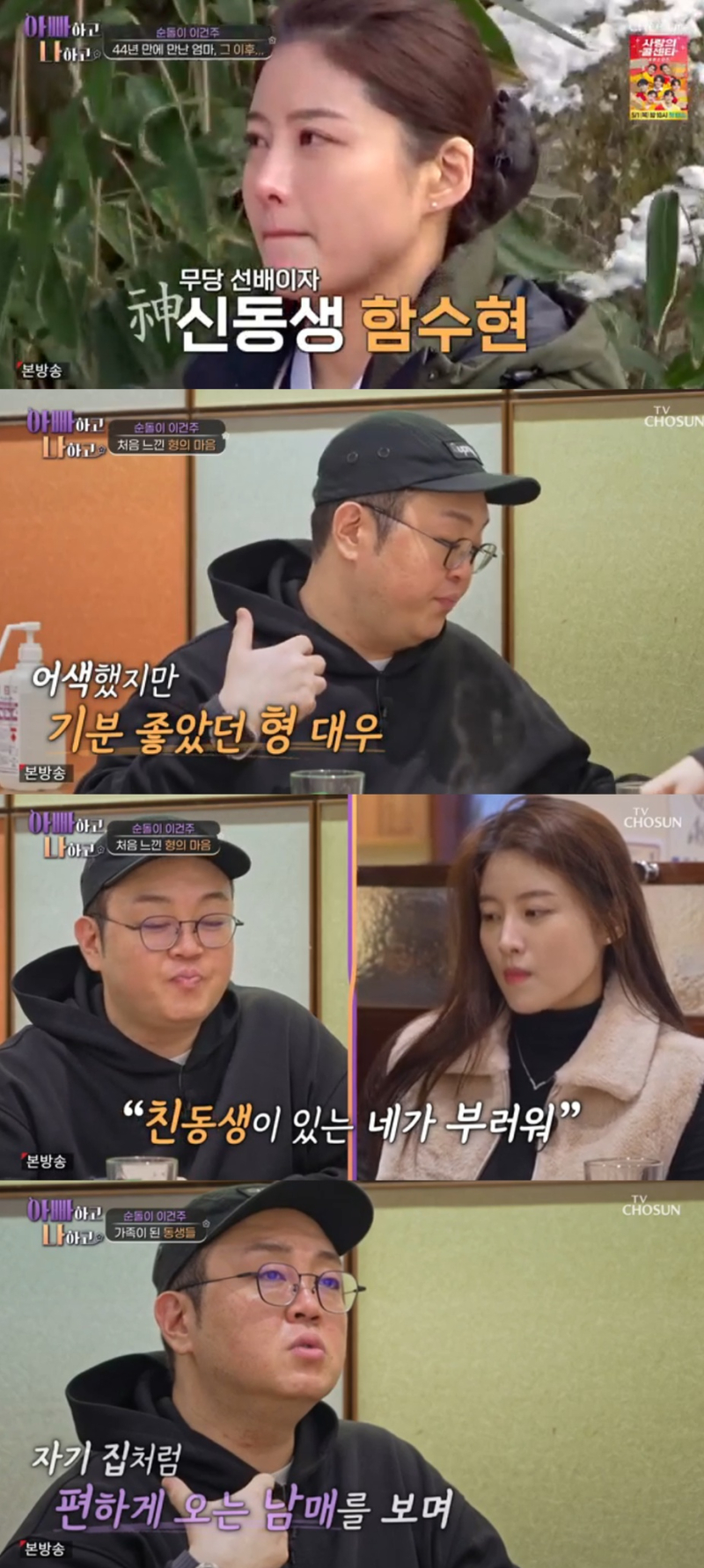 [OSEN=박근희기자]'아빠하고나하고’이건주가해외로입양된친동생을언급했다.29일오후방송된TV조선'아빠하고나하고'에서는배우겸무속인이건주가‘신들린연애’에출연했던‘신동생’함수현,그리고함수현의친동생함상진과함께식사자리를가졌다.오사카에방문한이유에대해이건주는“얼마전에엄마를만나고왔다.엄마를만나기도했고넘어야할산도넘었고풀어야할숙제도풀었으니까저에게준포상휴가느낌이다”라고설명했다.같이여행을온일행에대해이건주는“신동생함수현과수현이의친동생함상진이다”라고밝혔다.함상진에대해이건주는거의친동생같은존재라고말하기도.수현남매가불편해하지않냐는질문에오히려좋아한다고답했다.세사람은식사를하러가게에들렀고,이건주는“상진이가보면수현이를되게잘챙긴다”라고말하기도.이건주는“상진이가나랑있을땐나도너무잘챙겨줘”라고말했다.친동생이있음을깜짝고백한이건주는“친동생은태어나자마자복지기관을통해서입양된걸로들었다.지금은프랑스에있는걸로알고있다”라고밝혀모두를놀라게만들었다.친동생을꼭만나고싶다는이건주는“만나게되면대신말해주고싶다.나도몰랐지만어찌됐건너무나미안하다고.그리고좀안아주고싶다”라고마음을전했다./[email protected][사진]‘아빠하고나하고'방송화면캡쳐Copyright©OSEN.무단전재및재배포금지.