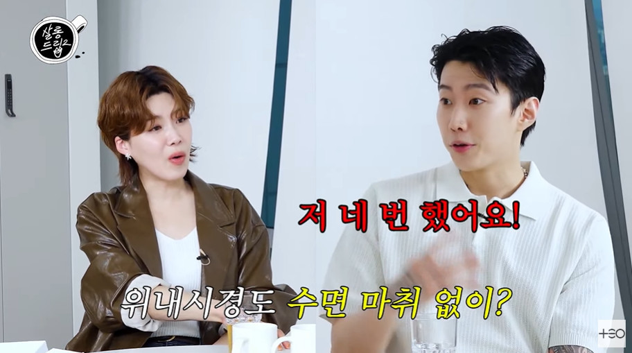살롱드립2캡처살롱드립2캡처[뉴스엔장예솔기자]가수박재범이비수면내시경트라우마를고백했다.4월29일공개된웹예능'살롱드립2'에는박재범이게스트로출연했다.이날박재범은고통을참은뒤오는짜릿함을즐긴다며위내시경도수면마취없이진행한다고밝혔다.박재범은"저4번했다.고통을즐겨서라기보단시간이아깝다.4분안에끝나는걸마취하면병원에서50분동안자야하지않나.굳이그럴필요가없다"고털어놨다.장도연이"엄청괴롭던데"라고놀라워하자박재범은"장난아니다"고몸서리치며"그고통이트라우마가돼서전날살짝잠이안온다"고전했다.이에장도연은"잠못자고날밤새우느니다음날병원에서50분동안편안하게자겠다"고쏘아붙였다.당황한박재범은"그런것도있다.예전에는했는데이번에안하면'나지금약해지고있나?'생각이들더라"고해명해웃음을자아냈다.뉴스엔장예솔imyesol@기사제보및보도자료[email protected]ⓒ뉴스엔.무단전재&재배포금지Copyright©뉴스엔.무단전재및재배포금지.