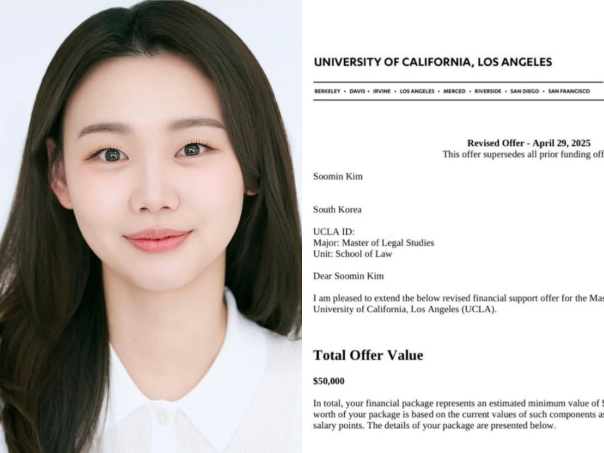 [텐아시아=이민경기자]아나운서출신김수민,UCLA장학금관련문서/사진=김수민인스타그램아나운서출신방송인김수민이UCLA로스쿨합격에이어5만달러장학금까지받게됐다고직접밝혔다.김수민은30일자신의SNS를통해"얼마전있었던UCLA로스쿨전액장학금면접결과가나왔다.수업료의거의전부를커버할수있는5만달러규모장학금을받게됐다"고전했다.이어그는"유학경험도없고외국인인나에게어떻게이런기회가주어진건지모르겠다"며"기도해주신분들덕분같다.아니면내끈기가받은격려같기도하다"고복잡한심경을털어놨다.김수민은"교내장학금은상상도못했다.오히려합격소식보다기쁘다"며"올여름출국해1년간석사과정을잘마치고오겠다"고덧붙였다.앞서김수민은이달초UCLA로스쿨합격소식을알렸다.당시에도아나운서출신이자두아이의엄마로서새로운도전을택한행보에응원이이어졌다.김수민은2018년만21세의나이로SBS에입사해최연소아나운서라는수식어를얻었다.'모닝와이드','TV동물농장','본격연예한밤'등굵직한프로그램들을맡으며활약했으나,2021년돌연퇴사했다.이후2022년5살연상의검사와결혼해슬하에1남1녀를두고있다.이민경텐아시아기자[email protected]©텐아시아.무단전재및재배포금지.