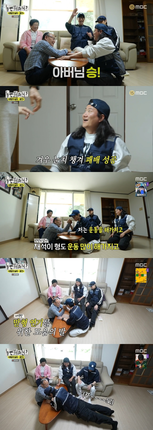 사진=MBC[스포츠투데이김태형기자]유재석,하하,임우일이노인한명에게팔씨름을졌다.3일방송된MBC'놀면뭐하니?'에는삼을먹으러오겠다는약속을지키러홍천산골마을을찾은유재석과하하의모습이그려졌다.홍천산골마을방문이처음인일일막내임우일도함께했다.이날임우일은어르신의제안으로팔씨름을하게됐다.유재석이임우일에게팔씨름을잘하는지묻자,임우일은"팔씨름을안한지는좀됐다"고답했다.임우일의팔을만져본하하는"팔이랑어깨가좋네"라고말했다.어르신은"난한번도져본적이없어"라며자신감을드러냈다.하하는임우일이어르신과팽팽한승부를펼치자,툭툭치며눈치를줬다.그제서야눈치를챈임우일은팔씨름을졌다.이어유재석도어르신에게도전했으나,하하의눈치주기로패배했다.하하역시혼신의연기를펼친끝에패배하는모습으로웃음을안겼다.[스포츠투데이김태형기자[email protected]]Copyright©스포츠투데이.무단전재및재배포금지.