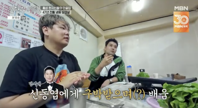 [OSEN=유수연기자]전현무가신동엽과의호흡을폭로해웃음을자아냈다.27일방송된MBN예능‘전현무계획2’(MBN·채널S공동제작)35회에서는전현무와곽튜브(곽준빈)가‘충무로의보물’김뢰하,류현경과함께47년전통의‘홍성최초냉삼(냉동삼겹살)집’을섭렵하는먹트립이공개됐다.이날전현무는“오늘‘먹친구’중한명은아역출신이자29년차배우”라며이름초성힌트를줬다.잠시후공개된‘먹친구’는배우김뢰하와류현경이었다.이후전현무는“홍성에오면꼭먹어야하는걸먹겠다”며한‘냉삼집’으로향했다.가게에도착한전현무는"(과거)냉삼이더인기가있었던게,돼지고기유통이안좋아서냉동으로해서먹었어야했다.요즘은좋으니까생삼겹살을먹는다"라고설명했다.전문지식에류현경은"수요미식회MC도하시고그러지않았나"라고말했지만,전현무는"그때는엉망이었다"라고셀프디스해눈길을끌었다.특히곽튜브는"(당시)구박을엄청받았다"고폭로,전현무역시"동엽이형이에게구박을엄청받았다.그때받았던갈굼,서러움,무시,차별쭉4년동안모아서얘한테다풀고있다.내가받았던걸그대로"라고인정해웃음을더했다./[email protected][사진]방송캡처Copyright©OSEN.무단전재및재배포금지.