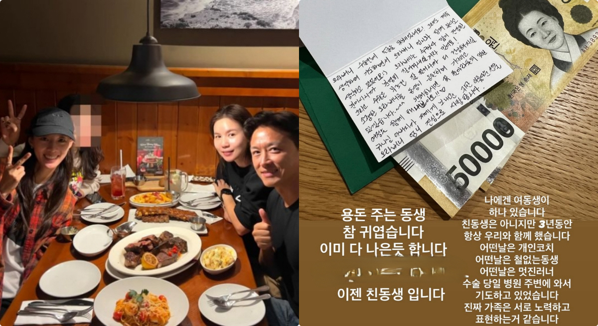 [스포츠조선김소희기자]배우진태현이갑상선암수술후가족의의미를다시금되새기며주변의따뜻한위로와사랑에감사한마음을전했다.26일진태현은자신의SNS를통해"용돈주는동생,참귀엽다.이미다나은것같다"며러닝코치이연진에게받은손편지와용돈봉투를공개했다.이어진태현은이연진코치에대해"이제는친동생"이라며"나에겐동생이하나있다.친동생은아니지만3년동안항상우리와함께했다"고소개했다.이어"어떤날은개인코치,어떤날은철없는동생,어떤날은멋진러너"라며"수술당일병원주변에와서기도하고있었다.진짜가족은서로노력하고표현하는것같다"고진심어린마음을전했다.이연진이보낸편지에는"오라버니수술전에얼굴을뵙지못했지만늘함께기도하며곁에있다고느꼈다"며"오라버니는누구보다마음이건강하신분이니잘이겨내실거라믿는다"는따뜻한응원이담겼다.이어"하나님이제게보내주신귀하고아름다운선물,오라버니와엄니(박시은)를진심으로사랑한다"고부부를향한애정을고백했다.진태현은지난해이연진코치를처음소개하며"2024년4월부터11월까지저희부부와함께훈련하며땀흘리고밥을먹으며진짜'식구'가된동생"이라고밝혔다."우연히알게된뒤1년넘게진심으로우리를챙겨주고응원해준친구"라며"단순한코치가아닌서로의삶을나누는진짜가족"이라표현했다.그는또"가족이란꼭혈연만으로정의되는게아닌것같다.부족한부분을채워주고평생함께할수있다면,그것역시가족의또다른형태라고생각한다"고말해많은이들의공감을자아냈다.앞서진태현은지난4월건강검진을통해갑상선암진단을받았으며,지난24일수술을마쳤다.그는"2025년6월24일오전11시쯤수술을잘끝냈다.교수님이회복실까지오셔서'이제걱정하지마라'며손을잡아주셨다.모든분들의기도덕분에내몸의암세포는사라졌다"며감사인사를전했다.한편진태현은배우박시은과2015년결혼했으며,부부는현재입양한세딸과함께가정을이루고있다.Copyright©스포츠조선.무단전재및재배포금지.