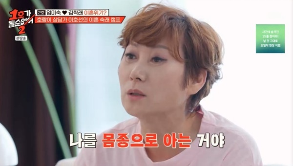 JTBC‘1호가될순없어2’캡처JTBC‘1호가될순없어2’캡처[뉴스엔유경상기자]임미숙이이혼하라는아들의조언에충격을받았다.6월25일방송된JTBC‘1호가될순없어2’에서는김학래임미숙부부의이혼위기가그려졌다.임미숙은아들에게“아빠가대문건전지하나못간다.다엄마가했다.이제나이들어서엄마도쉬게해줘야할거아니냐.이제엄마도몸이힘들다.아빠가못도와주면따뜻한말한마디라도해주면좋겠다”고불평했다.아들은김학래에게“이제아빠가엄마일을도와줘야하지않냐.이사해서집이크잖아.아빠가도와줄필요는있다”고말했고,임미숙에게도“아빠도변화가있을수있다.그걸조금만기다려주면.아들이끼면아빠가얼마나불편하겠냐”고했다.이에임미숙이“아빠가매일‘내나이에’그러는데나는안늙냐.본인만세월이가고본인만죽는줄안다.난시중만들고나이도안드는몸종으로아는거다.그게인격적으로제일싫은거”라고토로했고,김학래는“무슨몸종으로아냐”며부인했다.부부는말다툼을이어갔고아들은“내가와서말하면뭐하냐.둘이그냥이혼해라”며중재를포기했다.최양락이“이게한두번이아닌거”라며안타까워했다.아들은“내가볼때는둘이졸혼을하든이혼을하든”이라며졸혼과이혼을언급했고,임미숙은“헤어지라고해서너무놀랐다.그런소리를들으면서살아야했는지좀서글프기도하다”고털어놨다.이후부부는아들의소개로이호선상담가를찾아갔다.(사진=JTBC‘1호가될순없어2’캡처)뉴스엔유경상yooks@기사제보및보도자료[email protected]ⓒ뉴스엔.무단전재&재배포금지Copyright©뉴스엔.무단전재및재배포금지.