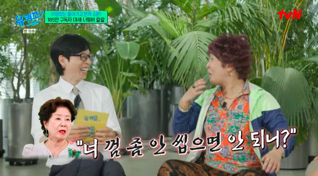 [OSEN=박하영기자]‘유퀴즈온더블럭’랄랄이선우용여와만났던일화를공개했다.25일방송된tvN예능‘유퀴즈온더블럭’(이하‘유퀴즈’)에서는구독자185만을보유한크리에이터랄랄이출연했다.이날부캐이명화를시작하고동년배팬들이굉장히늘었다는랄랄은“제가지금너튜브를6년정도해가는데제나이대또래10대부터30대까지가장많았다.근데이명화를시작하고나서4-50대가가장많아졌다”라고이야기했다.이어“502호랑올리면젊은친구들이이명화말투따라하면서재밌게달았다.지금은임춘옥씨김명옥씨장문의편지형식의댓글이나왔다.진짜로응원해주시니까그때진짜놀랐다”라고감사인사를전했다.특히랄랄은부캐이명화로선우용여와만났던일화를떠올렸다.그는“제가1분늦었다.그때막혀가지고너무죄송해서인사를하고들어가려고했는데이명화로했는데진짜로화를내시더라.전더냈다.‘너껌좀안씹으면안되니’하시더라.너무당황했다”라고털어놨다.또“그러고계속이제카메라없다고생각하고‘진짜남편있어?’물어보셨다.그래서남편이땅속에있고재혼했다.자식도있다고10개월이라고하니까놀라시더라.자연으로한거냐.너대단하다고했다”라고말해웃음을안겼다./mint1023/@osen.co.kr[사진]‘유퀴즈온더블럭’방송화면캡처Copyright©OSEN.무단전재및재배포금지.