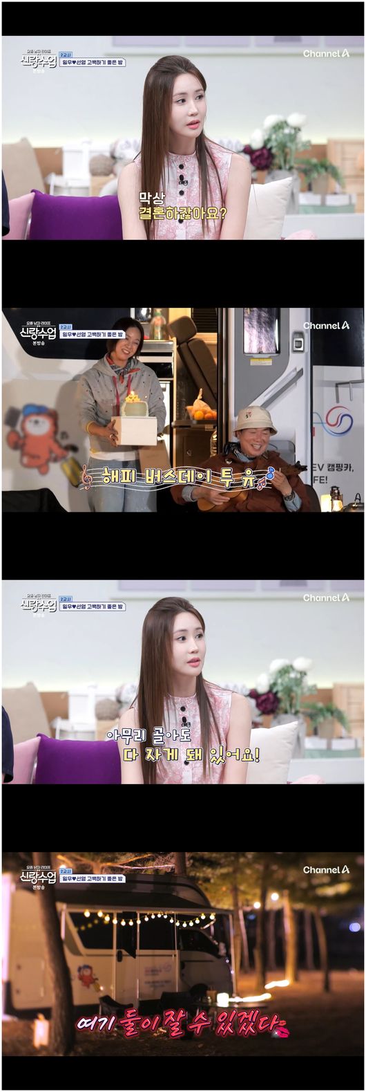[OSEN=오세진기자]'요즘남자라이프신랑수업'김일우가박선영과함께캠핑을떠났다.25일방영한채널A예능'요즘남자라이프신랑수업'(이하'신랑수업')에서는야영을즐기는박선영과김일우의모습이그려졌다.김일우는캠핑차안에서케이크를꺼내어들고온박선영을보고환한미소를지었다.박선영은김일우를위해케이크를준비했다.바로김일우의생일파티였다.조촐하지만김일우의얼굴에는환한미소를지었다.김일우는곧이어잘준비를했는데턱이며코에이것저것걸고나타났다.김일우는“박선영집에갔을때빛과소리를다차단했다고하더라.잠을설친다고해서”라며코골이방지용3종세트를준비하고나타났다.이다해는“저도정말작은소리도못듣는다.그런데막상결혼하면괜찮다.남편코고는소리도괜찮다”라며김일우를안심시켰다.캠핑카안에들어간박선영은"같이자도되겠는데요?"라고말해모두를깜짝놀라게만들었다.김일우는“같은차안에서침대가분리가돼있다”라며해명했으나모두들흐뭇한미소를감추지못했다./[email protected][사진]채널A'요즘남자라이프신랑수업'Copyright©OSEN.무단전재및재배포금지.