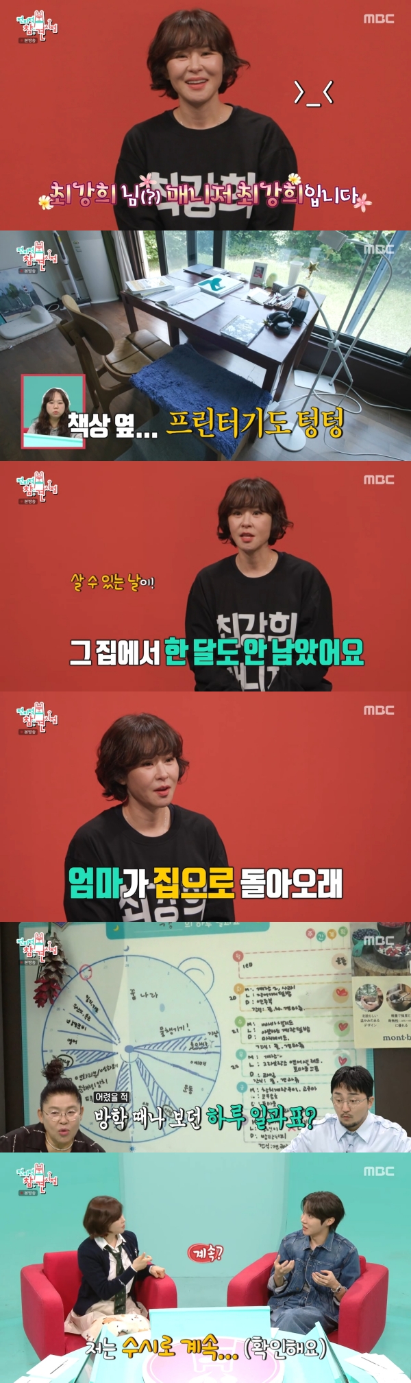 사진=MBC[스포츠투데이김태형기자]배우최강희가이사를앞둔근황을전했다.21일방송된MBC'전지적참견시점'에는제이홉과최강희가출연했다.이날최강희는"안녕하세요.최강희매니저최강희입니다"라고소개하며아직도매니저없이혼자활동하고있음을알렸다.최강희는다소휑해진집안을공개했다.그는곧이사를준비하고있다며"그집에서살수있는날이이제한달도안남았다.이사준비하면서친구한테나눠준것도있다"고밝혔다.어디로이사가는지묻자"엄마가집으로돌아오라고하셨다.왠지지금집으로돌아가면후퇴하는듯한기분이든다"며"고민중이다.다시집으로들어갈수도있고,조금더혼자살아볼수도있다"고답했다.최강희는하루일과표도공개했다.계획표중몇%정도지키냐는말에는"거의못지킨다.거의지키는건일어나는시간이다.그다음에밥먹는시간,자는시간은지킨다"고말했다.복근,유산소운동을보고는"계획이잘못됐네"라고해웃음을자아냈다.이어제이홉에게"약속을잘지키시지않나.1시간뒤에약속이있으면시간을맞춰놓으시는건가"라고물었다.이에제이홉은"시간체크말씀인가.저는수시로(시계를)본다"고답했다.최강희는"저도시계를계속본다.그런데딱그때쯤못본다"고해웃음을안겼다.[스포츠투데이김태형기자[email protected]]Copyright©스포츠투데이.무단전재및재배포금지.