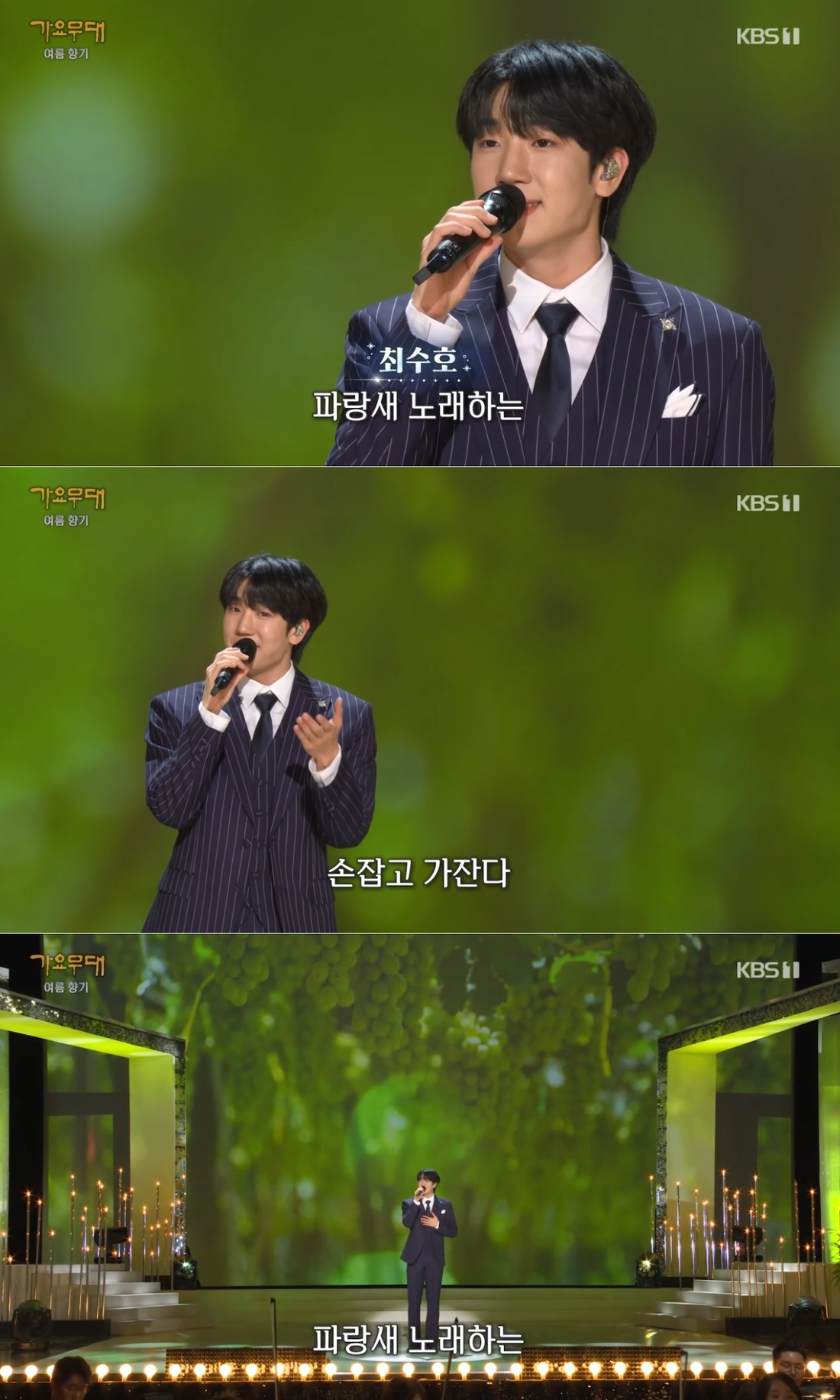 KBS1‘가요무대’가수최수호가무더위를한방에날리는청량한무대를선보였다.최수호는지난16일오후방송된KBS1‘가요무대’에출연해시청자들에게흥넘치는월요일을선물했다.이날방송에서최수호는도미의‘청포도사랑’을선곡해자신만의스타일로재해석했다.최수호는시원스러운가창력에전매특허인구성진창법을더해‘트로트대세’다운기량을아낌없이발산했다.최수호는남다른가창력에훈훈한비주얼로도보는이들의이목을집중시켰다.댄디한스트라이프슈트를차려입은그는햇살처럼싱그러운미소로‘청포도사랑’을열창하며청량감가득한무대를완성했다.마지막까지최수호는무더위에지친대중들을위해밝은에너지를뿜어내며관객들의박수를이끌어낸것은물론,안방1열까지제대로장악했다.탄탄한라이브와더불어다채로운표정과제스처가완벽하게어우러진고퀄리티무대로남녀노소세대불문모두의마음을사로잡았다.한편,최수호는‘2025현역가왕2전국투어콘서트’를통해전국의팬들과만나고있다.안병길기자[email protected]©스포츠경향.무단전재및재배포금지.