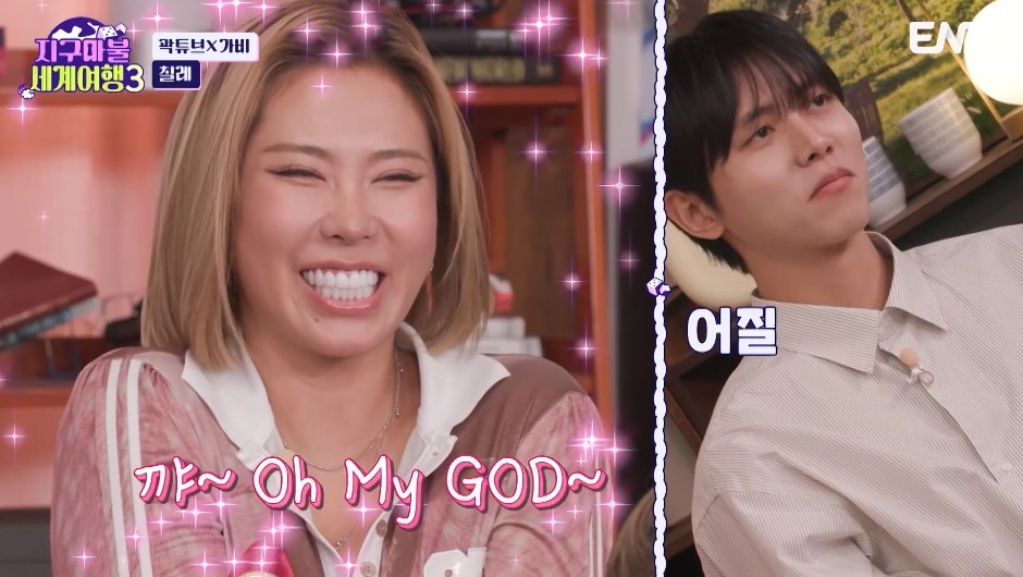 ENA‘지구마불세계여행3’ENA‘지구마불세계여행3’[뉴스엔이슬기기자]에너자이저가비의텐션이시선을끌었다.6월14일방송된ENA‘지구마불세계여행3’(이하지구마불3)에는5라운드여행파트너3인방파브리,가비,신승호와함께하는‘곽빠원’의여행이그려졌다.이날곽튜브와가비는칠레에서만남을가졌다.곽튜브는"한번을못맞추냐.오늘은진짜맞추자.유세윤형님?"이라며여전한헛다리로시선을끌었다.이에가비는곽튜브앞에등장해바로에너자이저모먼트를뿜어냈다.그는"와우"라고고성을지르는가하면"너무재밌을거같다"고신나해곽튜브를웃게만들었다.가비의하이텐션에반응한건스튜디오의주우재도마찬가지.빠니보틀은"우재형벌써눈물흘리고있어"라고이야기했고,주우재는"내가선글라스가필요한거같다"고해모두를웃게했다.뉴스엔이슬기reeskk@기사제보및보도자료[email protected]ⓒ뉴스엔.무단전재&재배포금지Copyright©뉴스엔.무단전재및재배포금지.