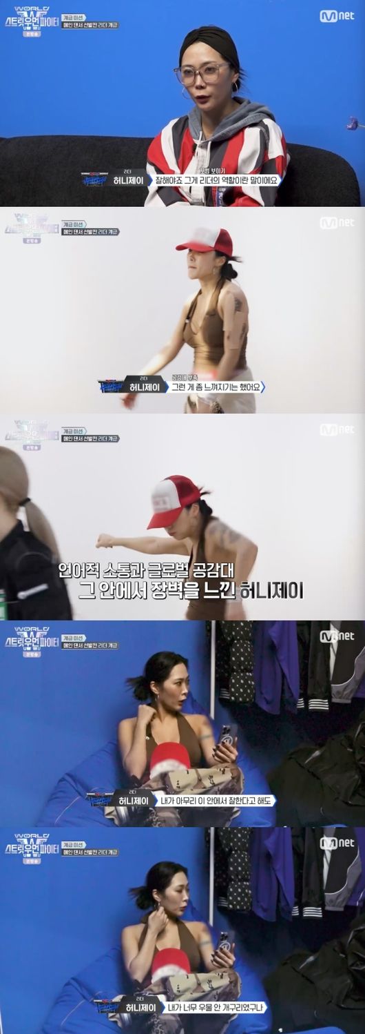 [OSEN=임혜영기자]허니제이가리더들과의연습에서소외감을느꼈다고호소했다.10일방송된Mnet‘월드오브스트릿우먼파이터’(이하‘월드오브스우파’(WSWF))3회에서는리더메인댄서선발전이진행되었다.박진영은허니제이에게“끝까지갔다가안무채택이안됐는데승부걸어야하는것이다”라고말했고허니제이는“최선을다해뺏어오겠다.너무아쉬웠다”라고말했다.연습을앞에둔허니제이는“잘해야한다.그게리더의역할이다”라고마음을다잡았지만막상연습에들어가니소통의어려움을호소했다.허니제이는“벽이라고해야하나.그런게느껴졌다.소외감엄청느낀다.리더들끼리이야기를하는데내가영어를잘하는것도아니고껴들기도뭐하다.내가조금더유명했으면,하는생각이많이들었다.국내에서만한게‘내가너무우물안개구리였구나’”라고설명했다.허니제이의속내를들은리정은“언니가느껴서인지하고받아들인게정말리스펙이다.내가허니제이었으면부정하고싶었을수도있다”라고말했다.아이키도“‘스우파’1등한사람이다”라고위로했다.허니제이는“리에하타의안무도잘할수있다는걸내일보여줘야겠다”라고의지를다졌다./[email protected][사진]Mnet‘월드오브스트릿우먼파이터’Copyright©OSEN.무단전재및재배포금지.