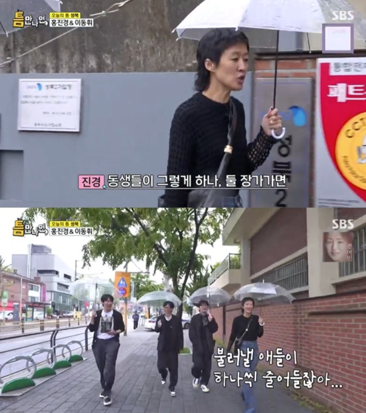 ▲사진|'틈만나면'방송화면[스포티비뉴스=배선영기자]방송인홍진경이조세호결혼이후섭섭하다라는심경을전했다.10일방송된SBS예능프로그램'틈만나면'에는배우이동휘와홍진경이출연했다.이날홍진경은유재석과만나“세호잘지내냐.보고싶다”라며조세호의안부를물었고,유재석은“잘지낸다”라고답했다.이동휘역시“행복해보인다”고전했다.홍진경은“동생들이장가가면섭섭하다.밤에불러낼애들이줄어든다”라고말했다.이에이동휘는“누나저도이제불러주시기로했잖아요.찐동생으로광희다음차례로”라고말했다.이에홍진경은“넌천천히(장가)가라”고말했다.<저작권자ⓒSPOTVNEWS.무단전재및재배포금지>Copyright©스포티비뉴스.무단전재및재배포금지.