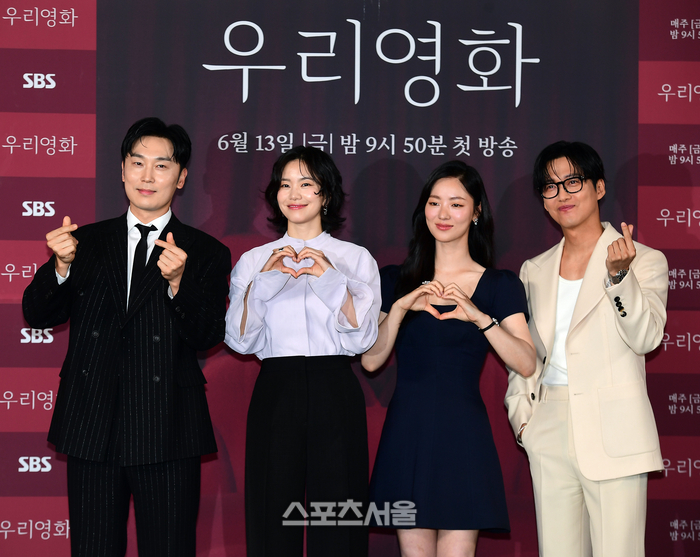 SBS드라마우리영화출연진들.사진|스포츠서울[스포츠서울|원성윤기자]“연기인생에전환점이될만한작품이다.”드라마흥행보증수표남궁민이SBS새금토드라마‘우리영화’에대한자신감을나타냈다.10일서울용산구CGV용산아이파크몰에서SBS‘우리영화’제작발표회가열렸다.이자리에는주연남궁민,전여빈,서현우,이설,이정흠감독이참석했다.남궁민은“예고편을보면알겠지만,영상미가무척이나뛰어난작품이다.11회까지봤는데작품은생각했던것만큼참잘나왔다”며“이작품을해서자랑스럽다는생각이들었다.후회가남지않게최선을다했다.너무즐거운마음으로촬영했다”고말했다.‘우리영화’는소포모어징크스에자신을옭아맨채로다음이없이살아가는영화감독과생의끝에다다라서야비로소인생의주연으로살아보려는시한부배우의이야기를다룬다.SBS드라마우리영화출연진들남궁민은이번작품에서영화감독역할로나온다.그는“첫촬영을할때영화감독처럼입고왔더니,이정흠감독이멜로남자주인공은멋있어야한다,더꾸미고오라해서화장을더하고왔다”며“감독으로서보다는한여자를사랑하는남자로서준비를더많이했다”고밝혔다.연인으로호흡을맞춘전여빈에대해서도칭찬했다.남궁민은“이번에전여빈배우와처음작업을했는데,깜짝깜짝놀랄때가많았다.제배우인생에전환점이될만큼좋은에너지를받았다”며“연기라기보다진짜사랑하듯이현장에서자연스럽게했다.섬세한연기를좋은파트너와함께해서좋았다”고밝혔다.남궁민.사진|스포츠서울전여빈은시한부인생을살아가는배우이다음역을맡았다.전여빈은“자신이유전병을갖고있다는걸알고있다.삶의유한함에대해자각하고있기에자신이할수있는모든힘을다해살아가려는인물”이라며“너무도생생히살아있는사람이었다.한순간도놓칠수가없었다.매순간절실하게살아가려는그마음을표현하려고애썼다”고말했다.이어전여빈은“다음은햇살같은사람이다.해가뜨는순간에도아름답지만해가떠있는동안에자기자신을비추고있는동시에환하게하면서저무는순간마저도아름다운사람”이라며“작품을하는7~8개월동안제마음이더건강해졌다.시한부모습을보여주기보다죽음보다지금삶의생명력에중점적으로연기하고몰두하려고했다”고밝혔다.전여빈.사진|스포츠서울함께호흡을맞춘남궁민에대해전여빈은“방송3사에서대상을받은선배다.후배로서존경심이있었다”며“대본을읽어보면서남궁민선배목소리가들리는것만같았다.눈빛이상상이되면서정말설레는기운이맴돌았다”고말했다.또한전여빈은“상대배우로서평등하게존중해줬다.헷갈려할때는부둥켜안아주듯이으쌰으쌰해주기도했다”며“한톨의억지스러움도없이감정이쌓였다”고남궁민을극찬했다.연출은맡은이정흠감독은“멜로는감성이중요하다보니남궁민전여빈두배우의감정을이입해서볼수있게연출에신경을썼다”며“각자있을때는이해되지않던부분이두사람이만났을때행동이공감되는부분이있다.4회엔딩에서도파민이치솟을것”이라고기대했다.‘우리영화’는오는13일첫방송된다[email protected]©스포츠서울.무단전재및재배포금지.