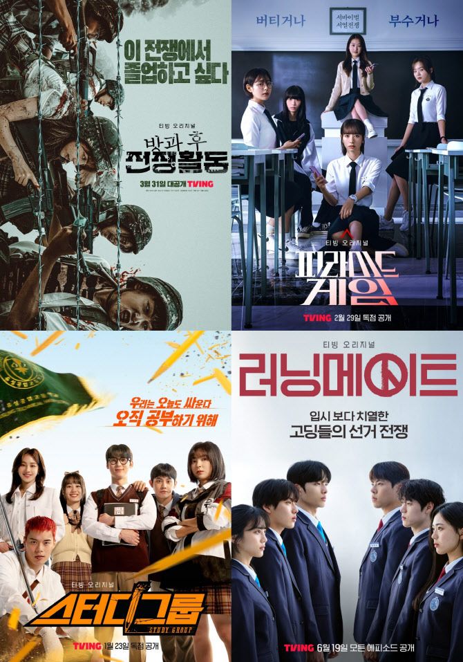 티빙오리지널'러닝메이트'오는19일공개[이데일리스타in최희재기자]학원물맛집티빙이‘러닝메이트’를선보인다.(사진=티빙)오는19일공개되는티빙오리지널‘러닝메이트’(연출·극본한진원,제작빌리언스플러스,에이스메이커스튜디오,러닝메이트문화산업전문유한회사,제공티빙)는불의의사건으로전교생의놀림감이된노세훈(윤현수분)이학생회장선거의부회장후보로지명되면서온갖권모술수를헤치고당선을향해달려가는하이틴명랑정치드라마다.치열한고등학교학생회장선거속청춘들의끓어오르는욕망과희로애락,그속에서빛나는우정과따뜻한성장스토리가색다른재미를선사할것으로기대된다.그동안티빙은‘방과후전쟁활동’,‘피라미드게임’,‘스터디그룹’등기존학원물의틀을깨는파격적이고독창적인세계관,색다른소재의학원물을끊임없이선보이며큰반향을일으켰다.‘방과후전쟁활동’(연출성용일,크리에이터이남규,극본윤수,제공티빙,기획스튜디오드래곤,제작스튜디오드래곤·지티스트,원작네이버웹툰‘방과후전쟁활동’(글/그림하일권))은하늘을뒤덮은괴생명체의공격에맞서싸우기위해입시전쟁이아닌‘진짜전쟁’을시작한고3학생들의이야기를그린작품.원작의독창적인세계관에드라마만의오리지널리티를강화해한층스펙터클한‘K학원전쟁물’의진수를선보였다는호평이쏟아졌다.리얼하고스펙터클한영상은장르적쾌감을극대화했고,개연성을덧입힌인물들은‘멀티캐릭터물’의묘미를배가해열띤반응을불러일으켰다.개성강한3학년2반학생들을다채롭게변주한신예군단의활약에공개후한번도주간유료가입기여자수1위를놓치지않으며화제를모았다.센세이션을일으킨‘피라미드게임’(연출박소연,극본최수이,크리에이터이재규,제작필름몬스터·CJENM스튜디오스,제공티빙)은한달에한번비밀투표로왕따를뽑는백연여고2학년5반에서학생들이가해자와피해자,방관자로나뉘어점차폭력에빠져드는잔혹한서바이벌서열전쟁을담았다.‘사회의축소판’교실에서펼쳐지는예측불가한서열전쟁과치열한두뇌싸움,심리전까지다이내믹하게풀어내‘학원심리스릴러’라는새지평을열었다.무엇보다김지연,장다아,류다인,신슬기,강나언등파격적이고독창적인세계관에흡인력을더한신예들이큰사랑을받았다.코믹고교액션물의진수를선보인‘스터디그룹’(연출이장훈·유범상,극본엄선호·오보현,기획스튜디오드래곤,제작와이랩플렉스,제공티빙)은티빙표학원물의정점을찍은작품.공부하기위해싸움을선택한‘힘숨찐’윤가민(황민현분),그리고저마다의사연을가지고스터디그룹을지켜내려는학생들의‘단짠’성장기에더해진타격감짜릿한액션이카타르시스를안기며온라인을뜨겁게달궜다.황민현의재발견이라는호평도쏟아졌다.황민현은순수그자체인‘공부덕후’윤가민부터불의를참지않는반전의싸움실력을지닌‘힘숨찐(힘을숨긴찐따)’캐릭터의반전매력을확실하게살리며인생캐릭터를새로썼다.위트넘치면서도통쾌한액션에황민현의균형감있는연기가더해져장르적쾌감을배가했다.황민현을필두로한지은,차우민,이종현,신수현,윤상정,공도유등저마다의성장을통해시청자들에게통쾌함그이상의감동을일으킨청춘배우들의열연에도극찬이쏟아졌다.학원물에새로운해석을더해온티빙이이번에는‘학생회장선거’를전면에내세운‘러닝메이트’로성공계보를이어간다.미쳐야이기는,이기면진짜가되는선거전쟁속펼쳐지는긴장감넘치는갈등구조와흥미로운관계성은이제껏본적없는본격하이틴명랑정치드라마의탄생을기대케한다.무엇보다도‘기생충’공동각본가로오스카각본상을수상한한진원의연출데뷔작이라는점에이목이집중되고있다.‘방과후전쟁활동’,‘피라미드게임’,‘스터디그룹’등완성도높고색다른매력의학원물로불패신화를이어온티빙의신작이라는점역시기대를더한다.연기파신예들을발굴해온티빙에서또어떤라이징스타가탄생할지도놓칠수없는관전포인트다.‘러닝메이트’는오는19일티빙에서전편공개된다.최희재([email protected])Copyright©이데일리.무단전재및재배포금지.
