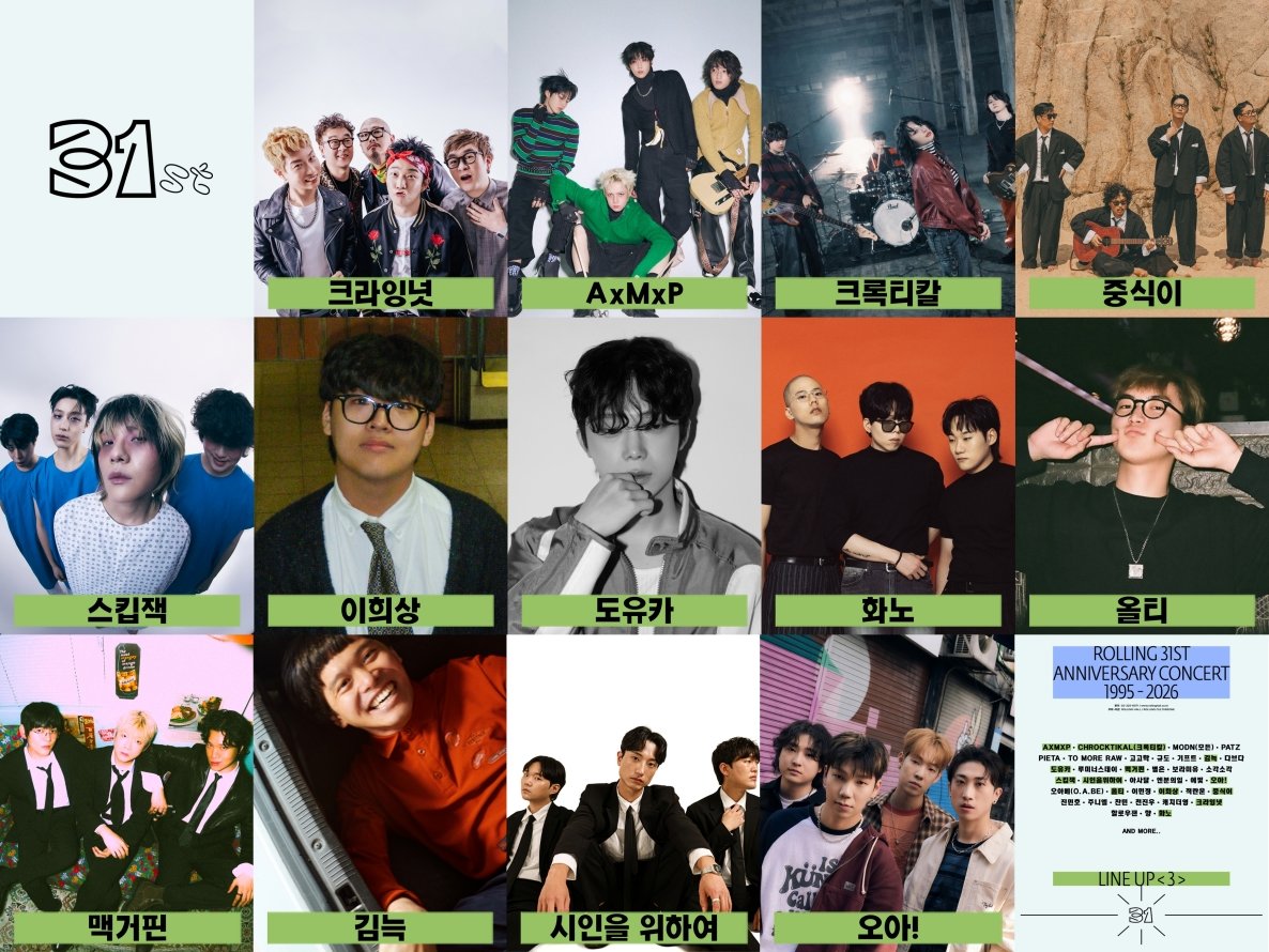 [동아닷컴][동아닷컴이슬비기자]홍대인디음악의상징적인공간‘롤링홀’이개관31주년을맞아화려한3차라인업을공개했다.이번3차라인업에는대한민국펑크록의살아있는전설크라잉넛을필두로,독보적인유머와서사를자랑하는중식이,폭발적인라이브퍼포먼스의맥거핀등총13팀이이름을올렸다.특히최근주목받고있는신예밴드AxMxP와ChRocktikal(크록티칼)을비롯해스킵잭,이희상,도유카,화노,올티,김늑,시인을위하여,오아!등개성넘치는아티스트들이대거합류해기대감을높이고있다.올해로31주년을맞이한롤링홀기념공연은2026년1월부터5월까지약5개월간진행된다.앞서공개된1차라인업(보라미유,예빛,기프트등15팀)과2차라인업(주니엘,엔분의일,적란운등10팀)에이어,이번3차라인업까지확정되면서록,힙합,발라드,R&B를아우르는풍성한음악축제의면모를갖추게됐다.롤링홀김천성대표는“인디음악의심장인롤링홀에서만볼수있는신예와베테랑의공존을기획했다”며,“다양한장르의무대를관객들과가까이서호흡하며즐길수있는공연인만큼,많은분이공연장을찾아주시길바란다”고전했다.한편,‘롤링홀31주년기념공연’의상세일정은순차적으로공개될예정이며,티켓예매는멜론티켓을통해진행된다.자세한정보는롤링홀공식홈페이지와SNS채널에서확인할수있다.이슬비기자[email protected]©스포츠동아.무단전재및재배포금지.