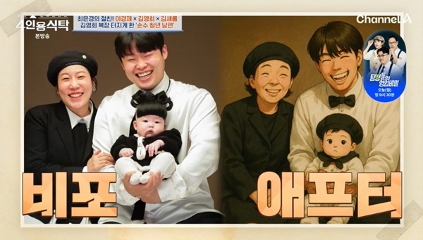 채널A‘절친토큐멘터리4인용식탁’캡처채널A‘절친토큐멘터리4인용식탁’캡처[뉴스엔유경상기자]김영희가10살연하남편과함께찍은가족사진변형결과에분노했다.6월9일방송된채널A‘절친토큐멘터리4인용식탁’에서는아나운서출신방송인최은경(52세)이출연해절친한의사이경제,개그우먼김영희,방송인김새롬을초대했다.김영희는10살연하남편과결혼한러브스토리를말한데이어1년연애후결혼해40대초반에아이를낳으며노산이라산후조리원에서도벽을잡고거미처럼다녔다고말했다.최은경은최근김영희의가족사진을보고폭소했다고언급했고,김영희는“가족사진을찍느라스타일리스트가옷을해줬다”며풀세팅을하고찍은가족사진을공개했다.그가족사진을챗GPT를통해애니메이션으로변형했는데김영희만할머니가된것.김새롬이“3대가찍은사진으로만들었다”며폭소했고김영희는“나를황혼육아하는사람으로만들고,(남편을)아들로만들었다”고분노했다.다른사진역시김영희만주름이자글자글하게변형됐다.이경제가“영혼을찍나?”라고너스레를떨자김영희는“소름이돋더라.상처많이받았다”고말해웃음을더했다.(사진=채널A‘절친토큐멘터리4인용식탁’캡처)뉴스엔유경상yooks@기사제보및보도자료[email protected]ⓒ뉴스엔.무단전재&재배포금지Copyright©뉴스엔.무단전재및재배포금지.