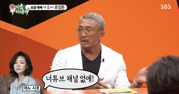 [서울=뉴시스]지난8일방송된SBSTV'미운우리새끼'에추성훈이스페셜MC로출연했다.(사진=SBSTV'미운우리새끼'캡처)[email protected]*재판매및DB금지[서울=뉴시스]신효령기자=이종격투기선수추성훈이집공개후야노시호와싸웠다고밝혔다.지난8일방송된SBSTV'미운우리새끼'에추성훈이스페셜MC로출연했다.MC서장훈은"(추성훈이)유튜브시작4개월만에골드버튼(100만구독자)을받았다.집을공개하면서유튜브는대박이났는데,가정의평화가깨졌다고들었다"고말했다.이에추성훈은"유튜브팀이집을소개해달라고했다.알았다.편하게있는그대로공개했는데,와이프허락을안받고그냥했다"고답했다."와이프가방송할때깨끗하게찍어서일본방송에는저렇게나갔다"며일본방송에서야노시호가소개한집자료화면을보여줬다.깔끔히정돈돼있는모습이이목을끌었다.반면추성훈이유튜브채널에서공개한집은다소어지러져있었다.이에대해추성훈은"저는편하게했다.원래위의모습이청소하면이렇게된다.밑에는제가유튜브에서찍은거다.사실사람이살면저렇게된다.그냥보여주는거다"고설명했다.이어"이것때문에엄청싸웠다.그때도몇개월되어서올라가는상태였다.유튜브채널을다없애라고했다"고털어놨다.추성훈은"저는왜그걸허락받아야하냐.매일청소하면된다"고덧붙였다.한편추성훈은일본모델야노시호와2년여의열애끝에2009년결혼했다.2011년딸추사랑을낳았다.[서울=뉴시스]지난8일방송된SBSTV'미운우리새끼'에추성훈이스페셜MC로출연했다.(사진=SBSTV'미운우리새끼'캡처)[email protected]*재판매및DB금지☞공감언론뉴시스[email protected]©뉴시스.무단전재및재배포금지.