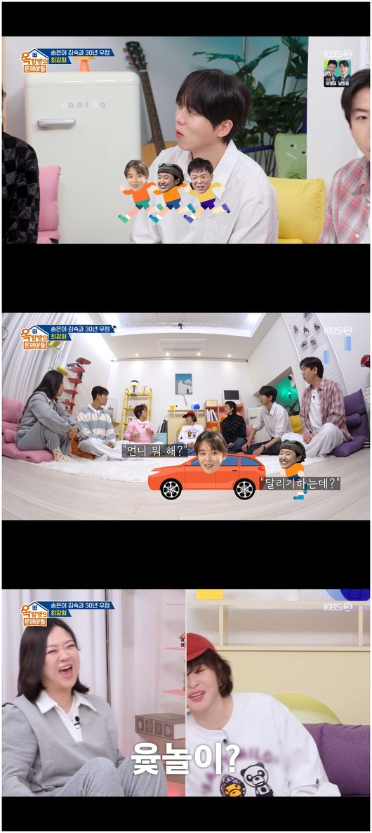 [스포츠조선닷컴김수현기자]KBS2'옥탑방의문제아들'에송은이와김숙의절친최강희가출격해시트콤같은30년우정사를공개하며웃음을선사했다.지난5일(목)방송된KBS2예능'옥탑방의문제아들시즌2'(이하'옥문아')270회는배우최강희가옥탑방에초대돼송은이,김숙,김종국,홍진경,양세찬,주우재와함께기상천외한문제들을두고도파민터지는퀴즈전쟁을펼쳤다.이가운데,김숙-송은이는최강희와함께30년동안쌓아온시트콤같은에피소드들을쏟아내며'살아있는토크박스'임을인증해웃음바다를만들었다.30년의세월을함께하며닮아간세사람은'건망증'까지닮아웃음을터지게했다.최강희가"건망증때문에세금을두번냈다"고하자김숙은"나는월급을두번줬어"라고고백해웃음을빵터트렸다.주우재는"세분이야기로시트콤이뚝딱"이라며폭소했다.특히김숙과김혜자가최강희의은퇴를막은인물이라는것이드러나이목을집중시켰다.김숙은은퇴를결심한최강희에게"은퇴를하든말든너만알고있어"라고말하며최강희가다시복귀할수있도록발판을마련해줬던것.최강희는"숙언니가가사도우미를시켜줬다"라고고백하자김숙은"강희가뭐라도해야한다고생각했다"라며애틋한진심을밝혀훈훈함을자아냈다.또한최강희는"당시김혜자선생님께은퇴고민을말씀드렸었다"라며"선생님께서'최강희괴짜네'라고하셨다"라고밝혔다그리고몇년뒤"최강희참못됐다.최강희일하는게엄마의자랑이었을텐데엄마는이제무슨낙으로사실까"라고진심을담은조언을전해최강희를뭉클하게만들었다.이조언으로최강희는다시복귀를결심하게됐다고밝혀코끝을찡하게했다.최강희는잠시연예계에서벗어났던그시간에대해"사람을가르는시기가되기도했고내가성장하는시기였기도하다"라고솔직하게고백했다.특히"알바하는20대친구들과소통해보고,그시간이엄청힐링됐다"라고밝혀공감을유발했다.최강희는홍진경,주우재,양세찬이모인'새롭조'를선택해'원조'송은이,김숙,김종국을상대로퀴즈전쟁을치렀다.특히열개의설명을듣고하나의단어를유추해말하는문해력퀴즈에서"요즘문해력교재를공부하고있다"고밝힌최강희가한방에정답을맞혀모두를놀라게했다.형용사,어지러움,아슬아슬,야한모습묘사에도사용,높은곳에올라가면느낀다등의설명을들은최강희는"아찔한"이라고정답을말했다.송은이는"설명은들을수록'헐대박'만생각났다"라며언어습관에대해돌아봤다.문해력문제부터입가주름방지템으로각광받는발명품,CIA비밀별다방매장의금기사항등기상천외한문제들이쏟아져나왔고푸는재미를선사했다한편,옥탑방에서펼치는도파민폭발의수다와퀴즈전쟁이담기는'옥탑방의문제아들'은매주목요일오후8시30분에KBS2TV에서방송된다[email protected]©스포츠조선.무단전재및재배포금지.