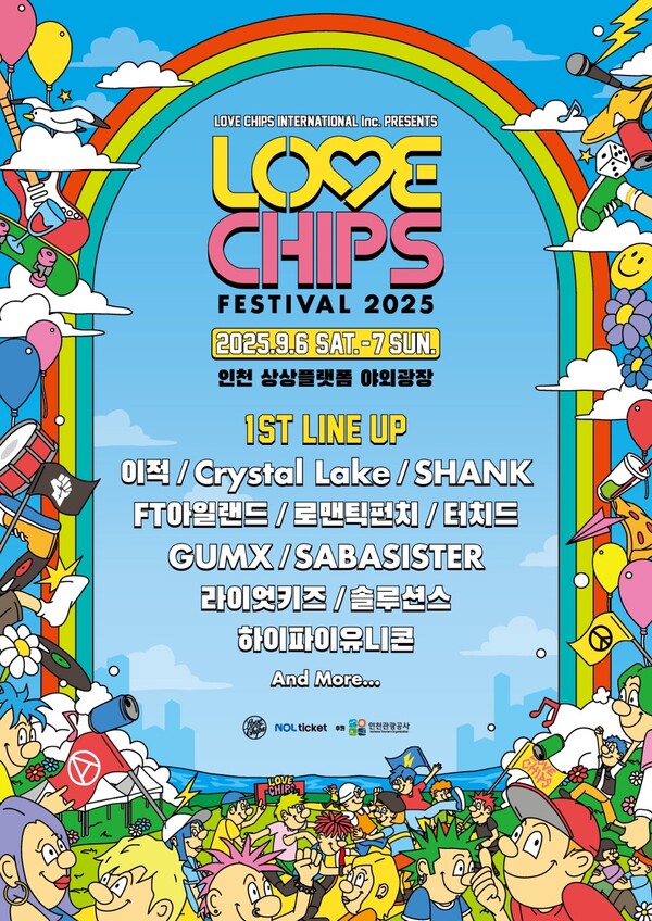 ▲1차라인업만으로도기대감을불러일으키는‘러브칩스페스티벌2025’가오는6월10일까지공식예매처인NOLTICKET(인터파크)에서양일권얼리버드티켓오픈을진행하며,일반예매는2차라인업발표후실시될예정이다.제공|러브칩스페스티벌2025’포스터[스포티비뉴스=김원겸기자]국내외유명아티스트들이대거참여하는글로벌축제브랜드인‘러브칩스페스티벌2025’가오는9월개최를확정짓고1차라인업을공개했다.‘러브칩스페스티벌2025’는러브칩스인터내셔널(LOVECHIPSINTERNATIONALInc)이주최하고인천관광공사가후원하는대규모라이브음악축제로오는9월6일과7일양일간인천상상플랫폼야외광장에서열린다.‘러브칩스페스티벌2025’는‘아름다운세상을향해함께하는한걸음’이라는모토아래더나은세상을위해아티스트들과소통하고관객과공감대를확산해지역사회발전에도움을주고자기획된문화선도적글로벌브랜드페스티벌이다.세상에는다양한사랑의형태가있듯무언가를사랑하고있는사람이모이고,라이브음악을중심으로다양한사랑을나눈다는메시지를담은음악축제로,단순한음악페스티벌을넘어모두가함께소통하는것으로뮤직페스티벌과글로벌캠페인이결합된신개념대중문화콘텐츠를표방한다.‘러브칩스페스티벌2025’1차라인업에는국내외최정상아티스트들이대거출연해기대가모아진다.독보적음악세계를보유한싱어송라이터이적을비롯해일본의유명메탈코어밴드인크리스탈레이크,일본나가사키출신3인조펑크록샹크(SHANK),한국형밴드의성장과진화를보여주는FT아일랜드,한국최고의밴드로성장한가수터치드,인디신의대표밴드로맨틱펀치가이름을올렸다.국내팝펑크의시작이자베테랑밴드검엑스,현재일본에서가장핫한록밴드사바시스터,한국의팝펑크밴드라이엇키즈,한국의록밴드더솔루션스,‘더아이돌밴드:보이즈배틀’에서최종우승후한국과일본에동시데뷔한밴드하이파이유니콘까지실력파아티스트들이생생한라이브무대들을꾸민다.여기에아름다운자연경관을함께감상하며즐기는오감자극음악라이브로만족도를더할예정이다.페스티벌과캠페인의가교역할을하며음악마니아들의전폭적인지지를받는‘러브칩스페스티벌2025’는조만간2차라인업을공개한다.<저작권자ⓒSPOTVNEWS.무단전재및재배포금지>Copyright©스포티비뉴스.무단전재및재배포금지.