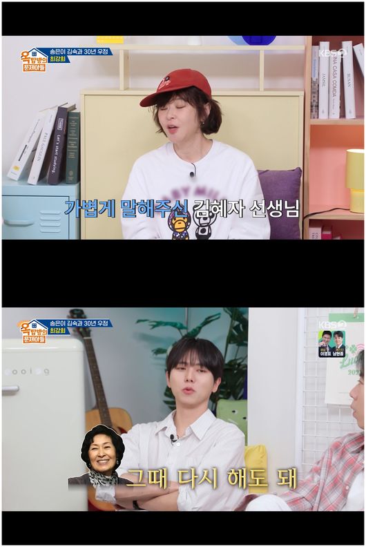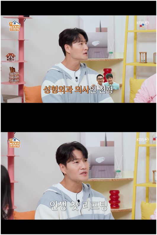[OSEN=오세진기자]‘옥탑방의문제아들’가수김종국이갑자기젊어진이유에대해솔직하게말했다.5일방영한KBS2TV예능‘옥탑방의문제아들’에서는동안특집,동안전문이자대표배우최강희가등장했다.최강희는“연예계잠시떠나있었다.고깃집에서아르바이트도하고그랬다.그때김숙이자기집가사도우미로취업을시켜줬다”라며떠나있던시절에대해말했다.그는한결같이30년가량절친으로지내는김숙과송은이와의인연을전했다.이들은대체적으로변하지않는모습이시선을끌었다.이날송은이는김종국을보다가유달리맑아보이는느낌이들어비결을물었다.김종국은“친형이성형외과의사다.병원에기계가있다고한번해보라고하더라.그래서리프팅시술을했다”라며솔직히말했다.주우재는“귀가관자놀이에붙었다.완전젊어졌다”라며호들갑을떨어웃음을안겼다./[email protected][사진]KBS2TV예능‘옥탑방의문제아들’Copyright©OSEN.무단전재및재배포금지.