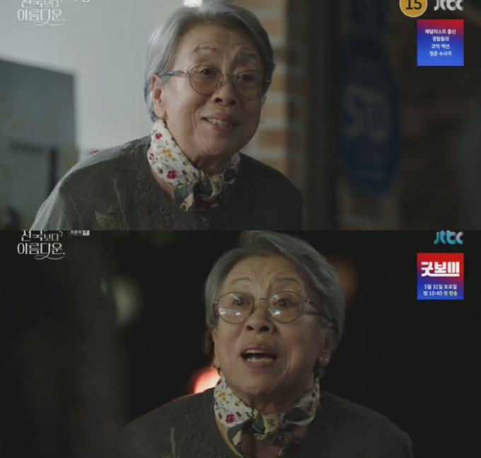 ‘천국보다아름다운’(출처:JTBC)배우겸성우고(故)장미자가JTBC드라마‘천국보다아름다운’최종회에깜짝출연하며마지막인사를전했다.지난25일방송된JTBC토일드라마‘천국보다아름다운’최종회에서는극중이해숙(김혜자분)이이영애(이정은분)의꿈에나타나로또번호를알려주는장면이연출됐다.이장면에서故장미자는편의점노인역으로깜짝등장해눈길을끌었다.이날방송에서이영애(이정은분)는복권당첨번호를들고구매하러가던중채무자장기환을마주치고그를쫓느라결국복권을사지못하는사건이벌어졌다.19억8천만원당첨기회를날린이영애는분노를삭이며장기환과편의점에서술을마시며5천원을빼앗는등티격태격했다.그때,편의점에들어선故장미자는두사람을부부로착각하고“남자는기를살려줘야지”라고말했다.이에이영애는“누가부부냐”며발끈했고,장기환은그를진정시켰다.그러자故장미자는“금슬이참좋구만”이란말과함께흐뭇해하며퇴장했다.이어방송말미에는“배우故장미자님,당신의열정을기억하겠습니다.그곳에서평안하시길”이라는추모메시지가자막으로전해져시청자들의마음에뭉클한여운을남겼다.60여년간연극무대와드라마에서활약한원로배우고장미자는최근까지도‘눈이부시게’,‘킹더랜드’,연극‘금의환향’,‘춤추는은빛초상화’등무대와브라운관을오가며활발한활동을이어왔다.그러나지난1월향년83세를일기로세상을떠났다.정혜진기자bnt뉴스연예팀기사제보[email protected]©bnt뉴스.무단전재,재배포및AI데이터활용금지