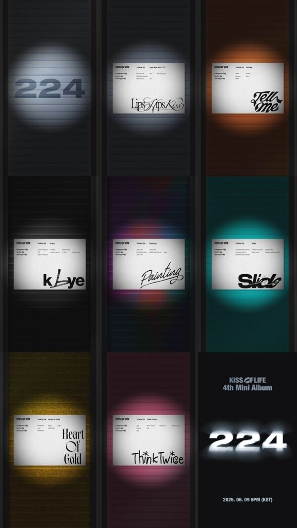 그룹키스오브라이프신보트랙리스트/S2엔터테인먼트[마이데일리=강다윤기자]그룹키스오브라이프(KISSOFLIFE)가신보트랙리스트를공개했다.키스오브라이프는23일0시공식채널을통해4번째미니앨범'224'의트랙리스트영상을오픈했다.돌아가는레일속각곡의제목이적힌박스가공개된가운데감각적인로파이사운드가더해지며이목을사로잡았다.키스오브라이프의신보'224'는총7곡으로타이틀곡'립스힙스키스'(LipsHipsKiss)를비롯해'텔미'(TellMe),'k바이'(kbye),'페인팅'(Painting),'슬라이드'(Slide),'하트오브골드'(HeartofGold),'싱크트와이스'(ThinkTwice)가수록됐다.이중'텔미'(TellMe)와'페인팅'(Painting)에는나띠가,'하트오브골드'(HeartofGold)에는쥴리가작사에참여했다.또한'k바이'(kbye)는미국의유명싱어송라이터인업살(UPSAHL)이작사,작곡에참여해더욱기대를모은다.키스오브라이프의신보'224'는오는6월9일오후6시각종온라인음원사이트를통해발매된다.Copyright©마이데일리.무단전재및재배포금지.