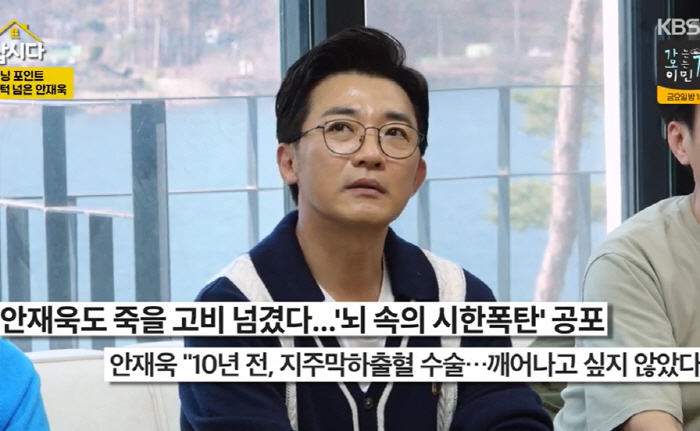 [스포츠조선닷컴김수현기자]배우안재욱이미국에서죽을고비를넘겼던아찔했던지주막하뇌출혈수술에대해회상했다.19일방송된KBS2예능프로그램'박원숙의같이삽시다'(이하'같이삽시다')에는'1세대한류스타'안재욱이게스트로출연했다.도착한박원숙의아들은바로배우안재욱이었다.1997년히트드라마'별은내가슴'에로쟁쟁한가수들을제치고가요프로그램에서1위를하는가하면배우로서도폭넓은연기를선보이며팔색조매력을보여주고있었다.박원숙은안재욱을보자마자"넌더예뻐진거같다.난항상'남자배우가너무예쁜거아니야?'라했다"라며반가워했다.박원숙의걱정과달리안재욱과윤대훈은이미친한사이였다.안재욱은"혜은이와에프소드가하나있다.조문차장례식장에갔는데화환이쭉깔려있는게다연예계관계자화환이더라.그래서'여기인가?'싶어서두리번거렸다.거기서날알아보고빈소로안내해서들어갔다.근데혜은이가있었다.돌아가신분이누군지몰라서당황했다.잘못간거다.그런데선배님이알아채신거다.그래서간김에인사를했다"라했고혜은이는"옛날시어머니가돌아가셨던거였다"라며끄덕였다.첫째인딸수현이와아들도현이.환한얼굴로아이들설명을하는안재욱을바라보는박원숙에윤다훈은"지금보면큰누나가이렇게한사람을향해서몸을돌려서말하는걸처음봤다"라고질투했다.안재욱은"지금의한류스타를보면부럽다.난누린게없다.당시에는현장에만있어서기사로보는것만알았다.'해외에서난리야'라는데해외에가면더못다니는거다.너무많이들알아보니까.일정끝내고술한잔마시려고하면팬들이몰려들었다.꼼짝을못했다"라했다.이어"행동을잘못하면나하나의잘못이한국인모두의잘못처럼보일까봐너무바른생활을해서재밌진않았다"라며웃었다.그러면서"국가간의교류가필요할때면개런티와상관없이공연을했었다.그런데기사가하나도안떴다.그때는다비밀리에했었다.나만만족하고장관님하고인사하고그랬다"라했다.윤다훈은"안재욱이요리를잘한다"며바베큐를자신이맡는대신나머지요리들을맡겼다.안재욱은계속해서챙겨주는혜은이에"말놓으셔라"라며"나어렸을때너무팬이었다"라며감개무량했다.안재욱은"예전에버스에서쪽잠잘때찜질방이라는게생겨서너무좋았다"며열악했던시절과달라진현재의장점에대해"주52시간을지켜야해서촬영시간도많이달라졌다"라고전했다.아내와9살나이차라는안재욱은"10살안넘겼다"며"살다보면나이차이는의미가없다.먼저결혼한신동엽,차태현이나한테'형토를달지마.억울하고말것도없고'라하더라"라고개를저었다.윤다훈역시"우리는아내가11살어린데아내가나보다더어른같다"라고끄덕였다.안재욱은"아내랑음악이야기를하면서로반대로만말해서음악얘기는안한다.현실은다르더라.정석대로안하면혼난다.이정도일줄은몰랐다.완전히극과극이다"라면서도아내사진을보여주는등자랑을했다.안재욱은"혼자살때집에서있는데전화가오면'어디아파?'라하더라.듣는사람이없으니혼잣말조차안해서목이잠긴거다.이렇게대화상대가있으면좋지않냐"라며남매들의집을보며좋다고끄덕였다.한때생사의갈림길에섰던안재욱은10년전지주막하출혈수술을했었다고.그는"심지어외국에서뇌출혈이있었다.드라마가연장되면서계획보다여행이길어졌다.친한형의결혼식사회도볼겸일정을잡아뒀다.그런데연창촬영으로불참하게됐다.드라마종영후2주휴가를받아서미국을갔다.친한형부부와함께여행을시작했다"고말문을열었다.이어"첫날속이불편하더라.컨디션난조로숙소에서휴식을취했는데거기서토하다가쓰러졌다.숨을못쉬겠더라.드라마처럼목뒤를부여잡고실신했다.마분지찢어지는소리가났다"라며생생하게당시를이야기했다.또"마침형이'너많이안좋아?약이라도먹어야하는거아냐?'했는데오니까내얼굴이하얗다더라.그래서엠뷸런스실려서병원으로갔다.그래도수술이잘됐다"며머리수술부위도보여줬다.안재욱은"수술후의식이깨어났을때눈을안뜨려고했다.차라리눈을감고싶었다.현실이아니라고믿고싶었다.눈을떠보니'이게진짜였네?'싶어서'아차'싶더라.살았다는기쁨보다.하늘에대고원망도했다.'왜하필나한테,제가뭘'이라는의문을품었다.자꾸원망이들더라.내인생에가장특별한일이다"라며상황을설명했다.그는"수술전의료진이준비하던상황이었는데'절개를해야한다'고해서형수가눈물을흘리면서'배우가수술해서문제라도생기면..다른방법이없을까요?'하고울었다.그런데도나를살리기위해수술을한거다"라했다.미국의료보험혜택을받지못한안재욱은'병원비만몇억'이라는말에"퇴원할때병원비를알게됐는데50만달러라더라.무려5억원에달하는병원비다.우리나라는병원비수납후수술하는데미국은일단수술하고병원비를수납하는거다"라설명했다.병원비조율후완납까지2년이넘게걸렸다고.안재욱은"한국와서의료전문변호사의도움으로병원비를조율했다.결국엔반이하로줄였다"고전했다.이어"무사히회복하고지금의아내도만나게되고아이들도보게됐다.그때잘못됐으면내인생이없던거니까"라며끄덕였다.안재욱은"아내와연애할때손편지를많이썼다.그게많이좋았다더라"라며"연애할땐사랑과관련된러브레터였다면지금은