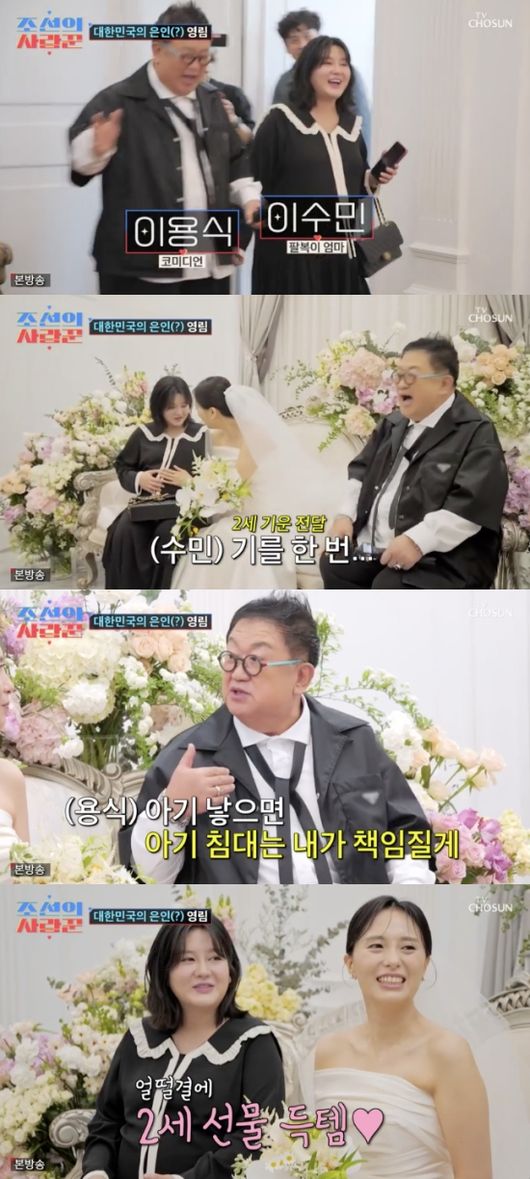 [OSEN=임혜영기자]심현섭의결혼에2세걱정이쏟아져다.19일방송된TVCHOSUN예능‘조선의사랑꾼’에서는하객1400명의역대급규모를자랑하는심현섭의결혼식현장이최초로공개되었다.결혼식당일,로비와신부대기실은인산인해를이루었다.하객들모두가정영림에게고마운마음을전했다.이용식과이수민도신부대기실을찾았다.결혼식당시임신중이던이수민은“기를한번”이라며2세의기운을전달했다.이용식은“아기낳으면침대,카시트까지책임지겠다”라고축하의말을건넸다.이후결혼식이진행되었고,설운도가등장해역대급축가를선보였다.설운도는“결혼한지35년됐다.살면서힘든일도많았지만사랑으로극복할수있다.제수씨저도2세때문에걱정했다.나이가50이넘으면힘든부분이있다.병원에서검사하고양호하다고하니많이낳으시길바란다”라고축하인사를건넸다./[email protected][사진]TVCHOSUN예능‘조선의사랑꾼’Copyright©OSEN.무단전재및재배포금지.