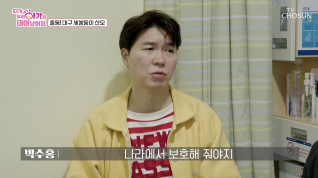 [OSEN=김채연기자]박수홍이세쌍둥이는태아보험가입이어렵다는사실을알고분통을터트렸다.16일방송된TV조선‘우리아기가태어났어요’(약칭‘우아기’)에서는대구에서세쌍둥이출산을앞둔부부의모습이전파를탔다.부부는첫째딸을두고있고,둘째를계획하다가세쌍둥이임신을했다고.자연임신확률로는0.01%이라더욱놀라움을자아냈다.산모는“26주에자궁수축이와서한달동안입원,퇴원을반복하고있다.자궁수축억제제를맞고있는데많이쓰면부작용이올수도있어서아기들상태를24시간모니터링하고있다”고털어놨다.박수홍은산모팔목에남겨진수많은주사자국을보며안타까워했다.현재31주차인산모는“세쌍둥이출산은보통34~35주되면출산한다고하더라.목표는3주정도버티는거다”라며“엄마배속에서하루는나와서일주일이랑같다고하더라”고설명했다.세쌍둥이중두명은일란성,한명은이란성으로.아기집을홀로쓰는셋째와달리첫째와함께아기집을쓰는둘째몸무게가다소작은상황.이를위해산모는최대한시간을두고출산을미루고있었다.박수홍은부부에게한아이의부모에서네아이의부모가되는게경제적으로부담스럽지않냐고물었고,부부는“그게가장부담이된다”고공감했다.남편은“첫째는아직기저귀를쓰고있다.세아이는보험에가입하려고하니까회사에서다거절하더라”고토로했다.놀라는박수홍과양세형에남편은“솔직히이해는한다.너무하다고생각은하는데,보험회사입장에서는손해니까.병원에가는게확정이니무조건내는돈보다더많이줘야하니까이해는한다”면서도아쉬운마음은감추지못했다.이에박수홍도“나라에서보호해줘야지.다둥이들을안전하게보험에가입해서낳게해줘야한다”고쓴소리를내뱉었다./[email protected][사진]방송캡처Copyright©OSEN.무단전재및재배포금지.