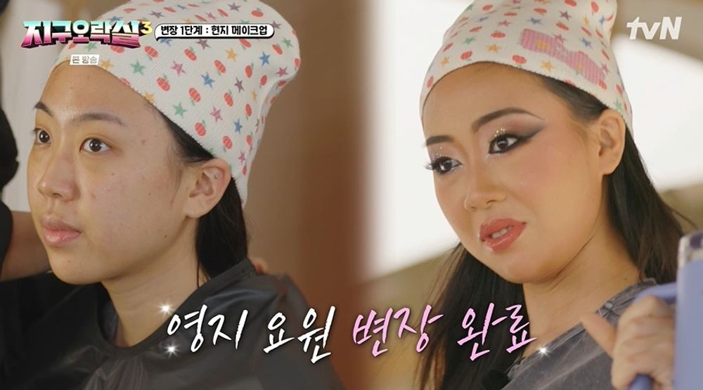 [스타뉴스|김정주기자]/사진=tvN'뿅뿅지구오락실3'방송화면예능'뿅뿅지구오락실3'의멤버들이아부다비현지인으로파격변신했다.16일방송된tvN'뿅뿅지구오락실3'에서는이은지,미미,이영지,안유진이메이크업과의상을통해아부다비현지인으로파격변신하는모습이그려졌다.앞서멤버들은옥황상제의법인카드를들고도망간토롱이를잡기위해아부다비에서요원트레이닝을받았다.이날네사람은본격적으로현장에투입되기전비밀요원의정체가노출되지않도록현지메이크업과의상으로위장했다.현지인에게메이크업을받은네사람은평소와다른진한메이크업으로눈길을끌었다.이은지는과한아이라인에반짝이는아이쉐도우로꾸민이영지에게"약간홍대MZ무당같은느낌이있다"라고농담을건넸고,이영지는"돈춤한번보여드리겠다"라며현란한허리춤을선보여웃음을자아냈다./사진=tvN'뿅뿅지구오락실3'방송화면메이크업을마친이들은쇼핑몰에서각자캐릭터에맞는의상을고르며현지인으로변신을마쳤다.미미와안유진은화이트컬러의의상을선택했고이은지는오렌지컬러를,이영지는블랙컬러를택해눈길을끌었다.이영지는"나너무마음에들어.이렇게살고싶어"라고만족감을드러냈고,안유진은"알라딘에나오는자파같다"라고받아쳐웃음을유발했다.이영지는"세사람보면한국인같지않다"며"특히미미는공항승무원같다.공익광고에나오는사람같다"라고감탄했다.김정주기자[email protected]©스타뉴스&starnewskorea.com,무단전재및재배포금지